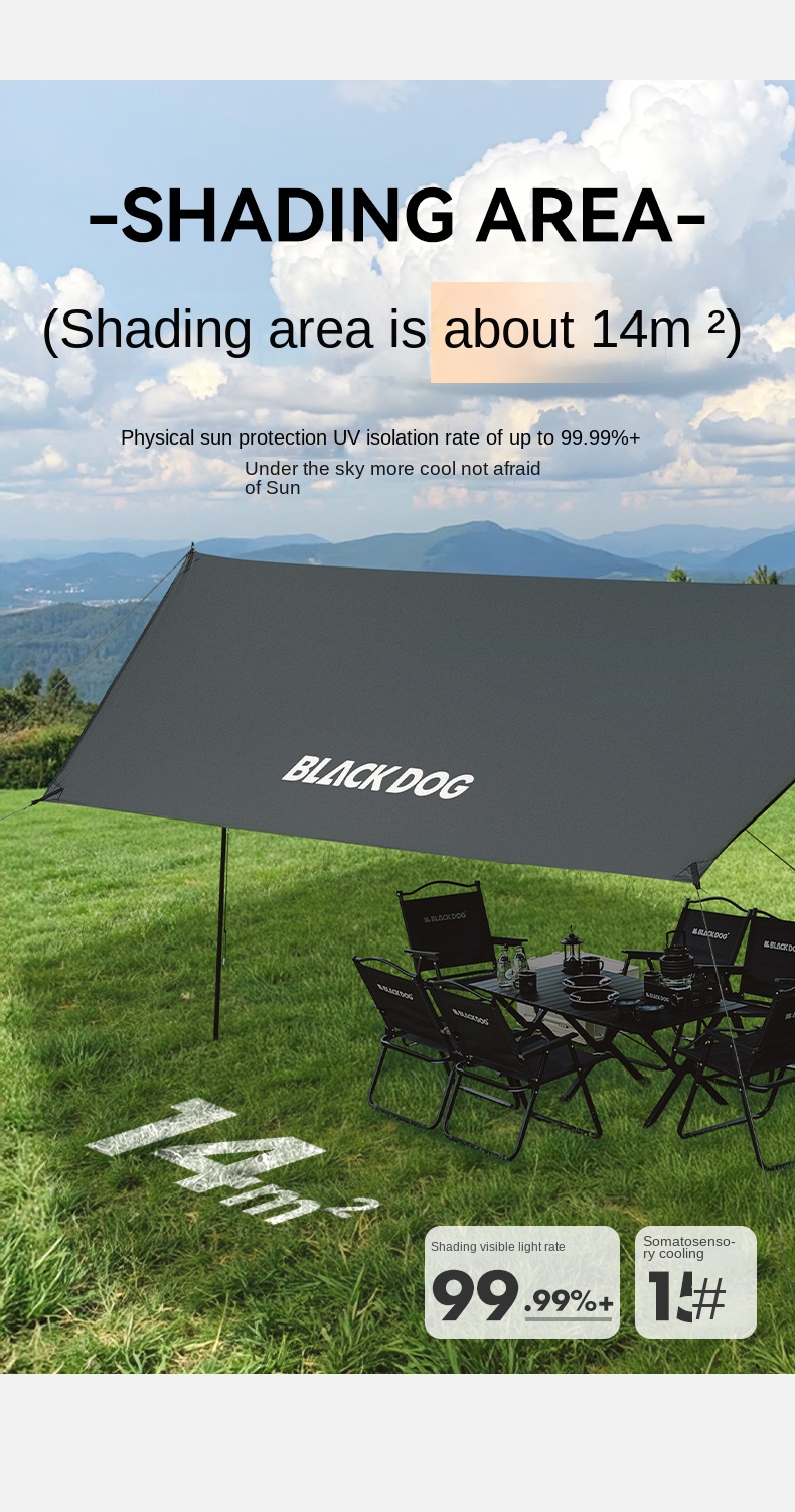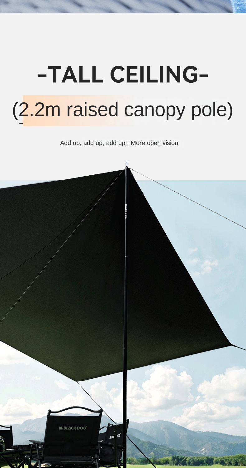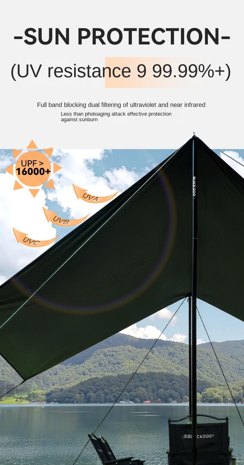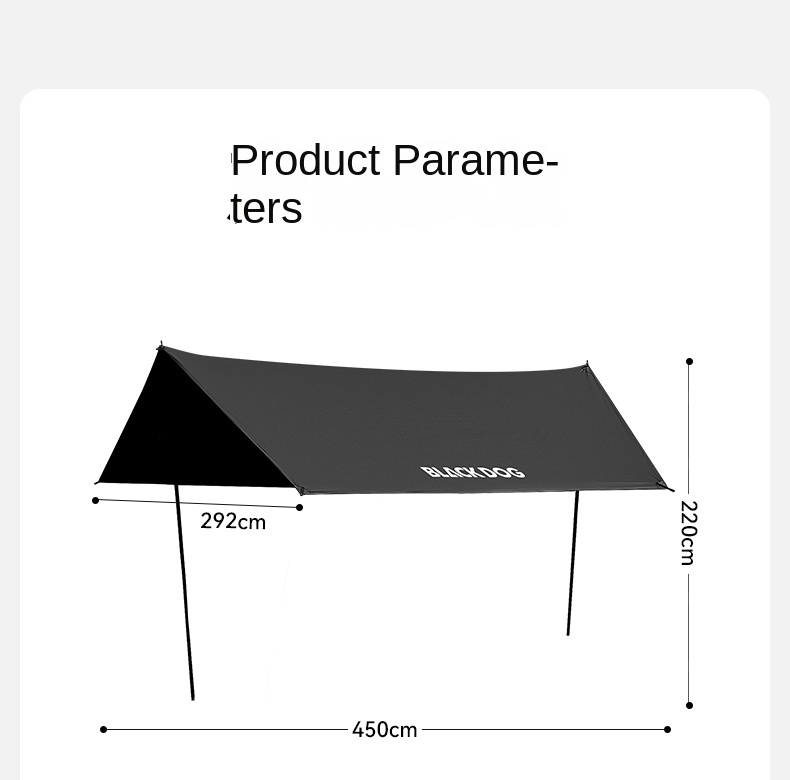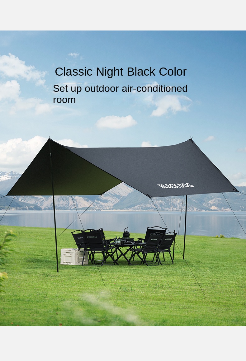 Blackdog TIMELESS Sky Curtain Black Canopy Tarp Awning Full Blackout Titanium Black Vinyl Coated Sunscreen Waterproof Outdoor Sunshade with 2 Poles