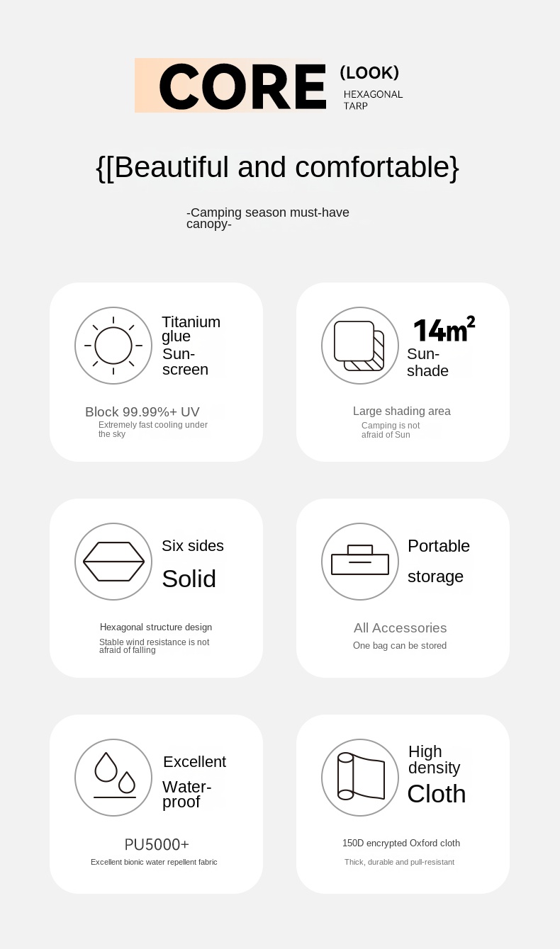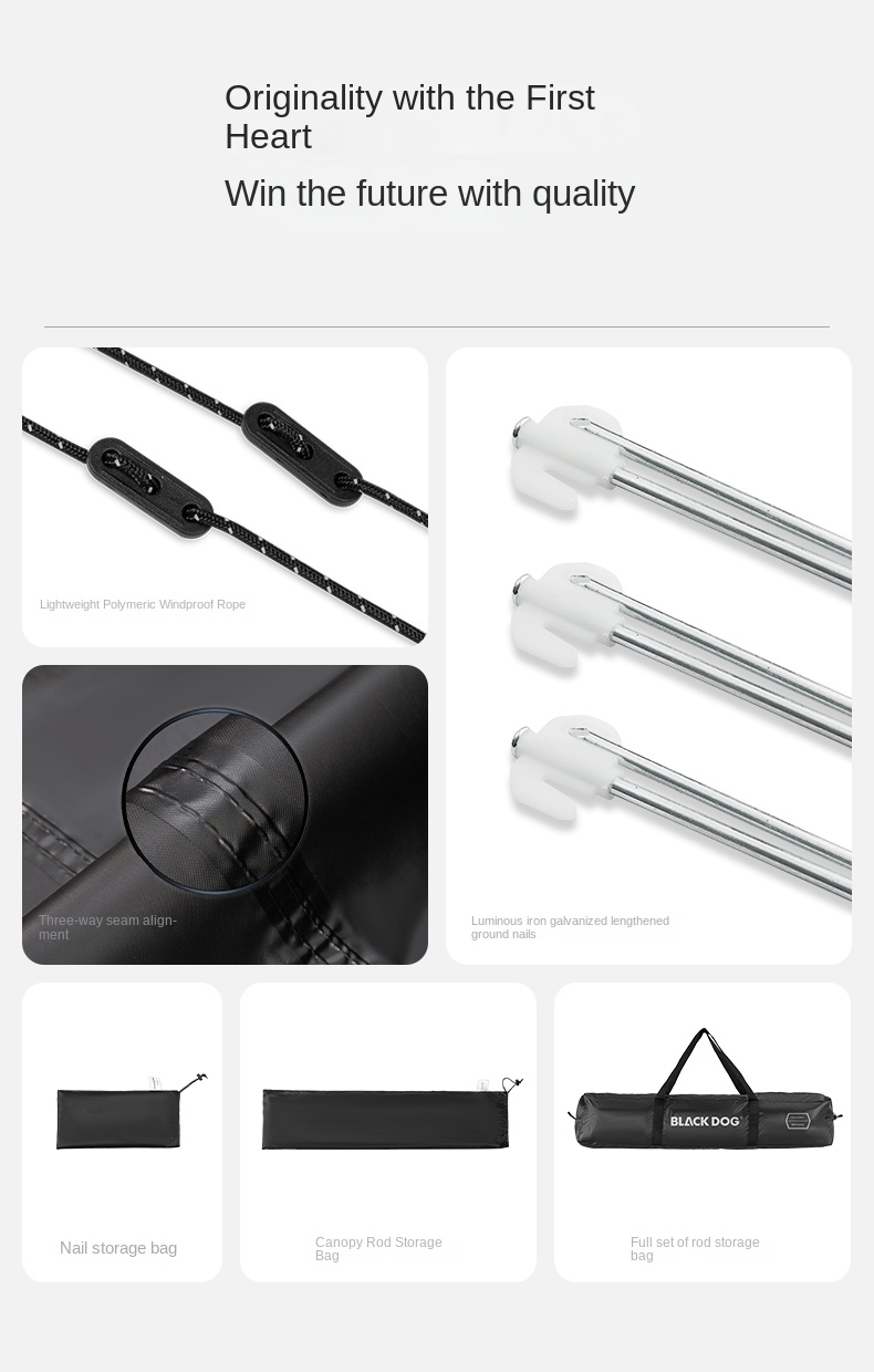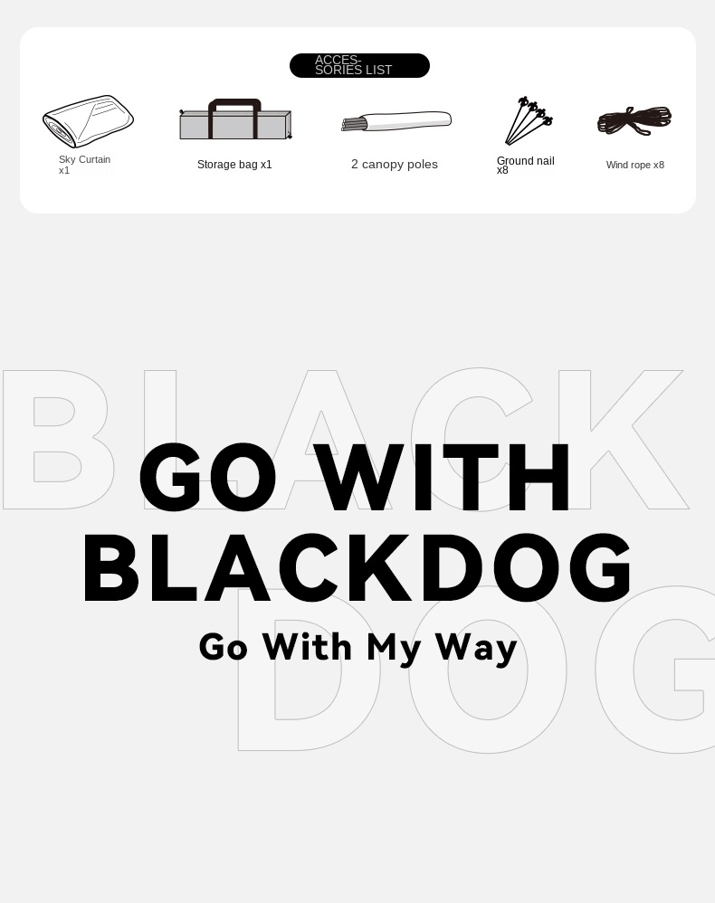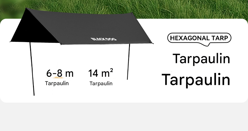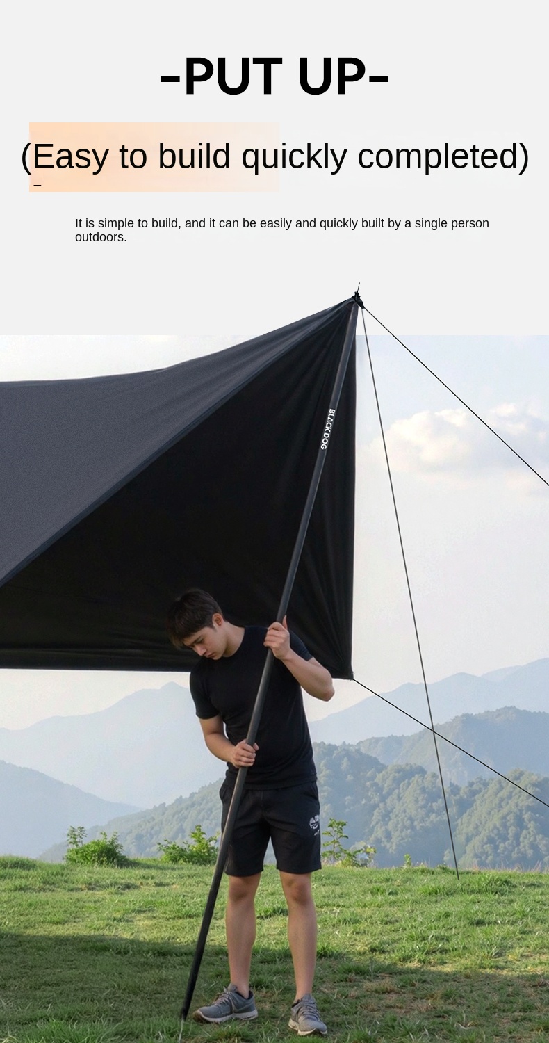 Blackdog TIMELESS Sky Curtain Black Canopy Tarp Awning Full Blackout Titanium Black Vinyl Coated Sunscreen Waterproof Outdoor Sunshade with 2 Poles