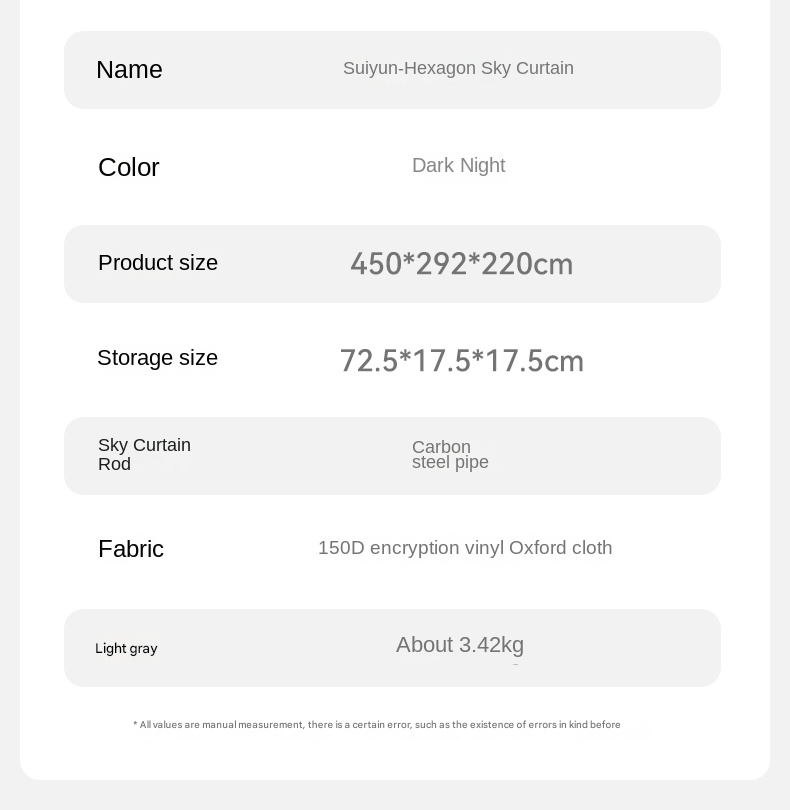 Size: 450x292x220 cm EzCamp