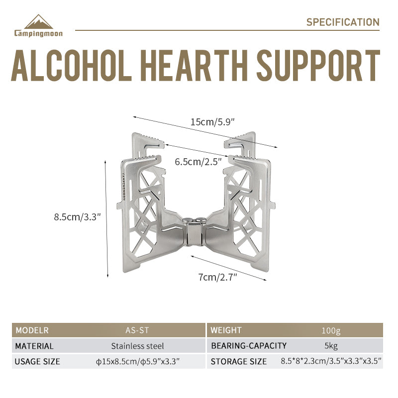 Campingmoon AS-ST Solo Alcohol Stove Stand Bracket Portable Ultralight Liquid Stove Mount Outdoor Camping Hiking Cooking Alcohol Fuel Stainless Steel
