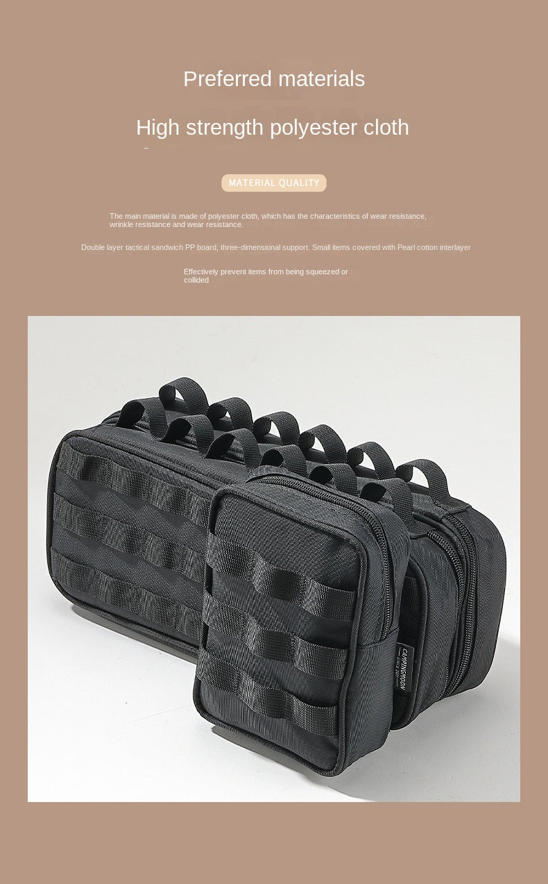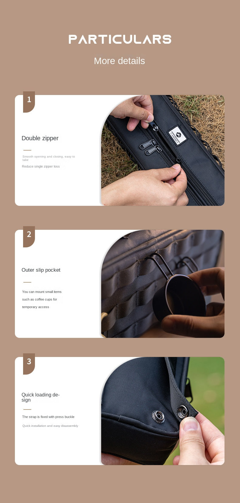Campingmoon BK-15/40 Tactical Storage Bag Portable Outdoor Camping Equipment Tools Double Layer Storage Peg Stakes Hammer Rope Organizer Black Khaki