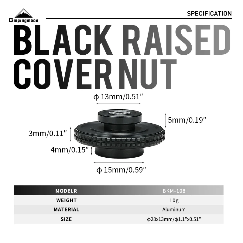 Campingmoon BKM-108 Black Raised Cover Nut Portable Lightweight Protection Valve Safety Cover For Screw Threaded Camping Butane Canister Aluminum