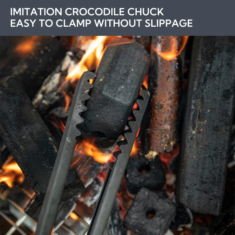 Campingmoon BKMS-41 Black Stainless Steel Premium Charcoal BBQ Grill Tong Alligator Clip Large Size Heat Resistant Teak Wood Handle Outdoor Camping Picnic Tool Camping Moon