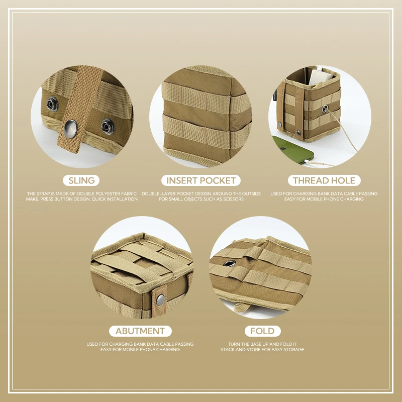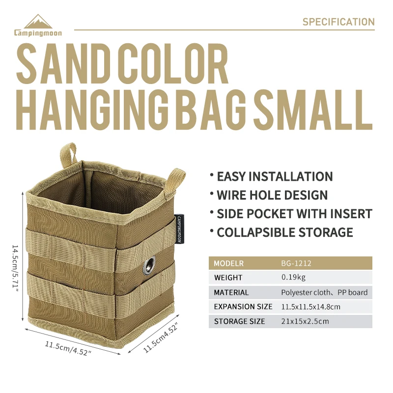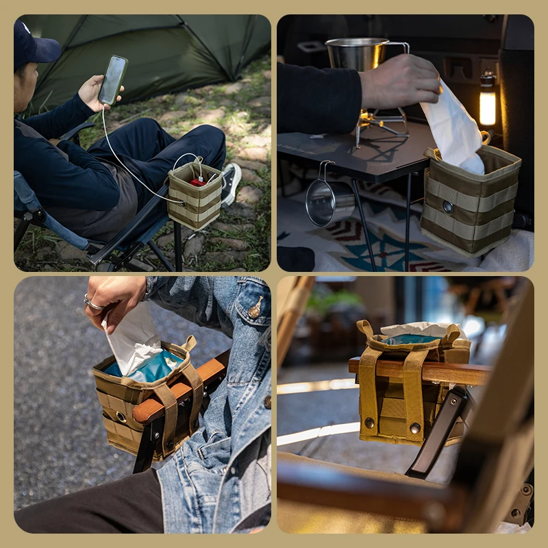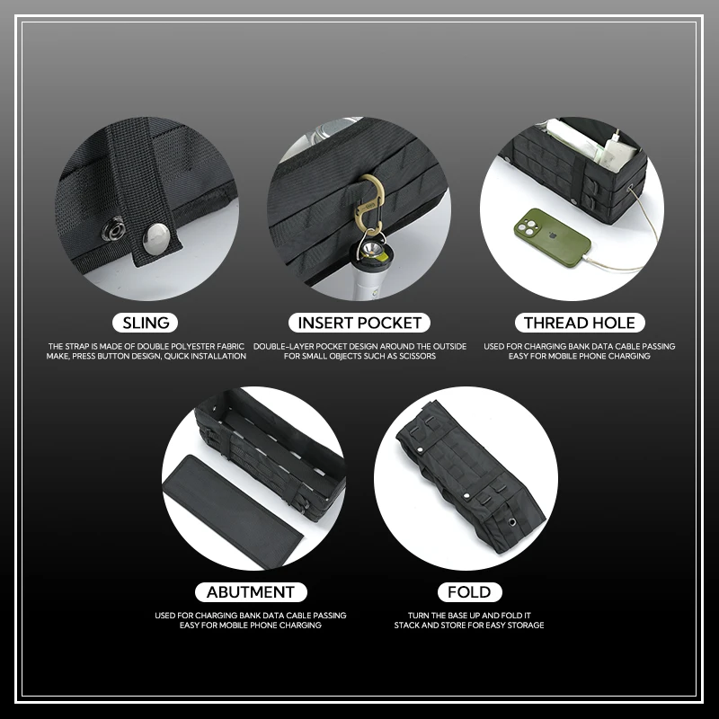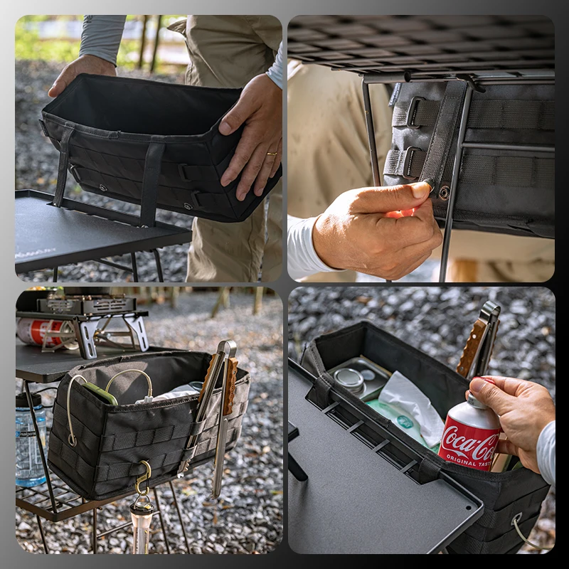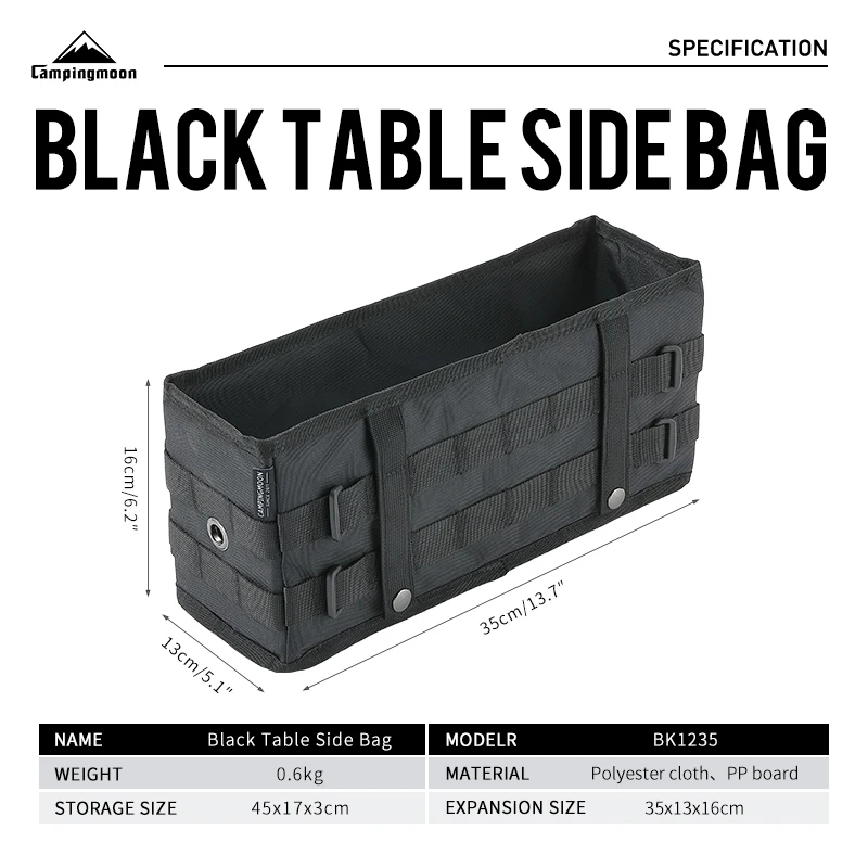 Campingmoon Black Table and Chair Side Storage Bag Outdoor Camping Tactical Design Portable Foldable Polyester Small Large Universal Armrest Hanging Side Pocket Bag Camping Moon BK-1212 BK-1235