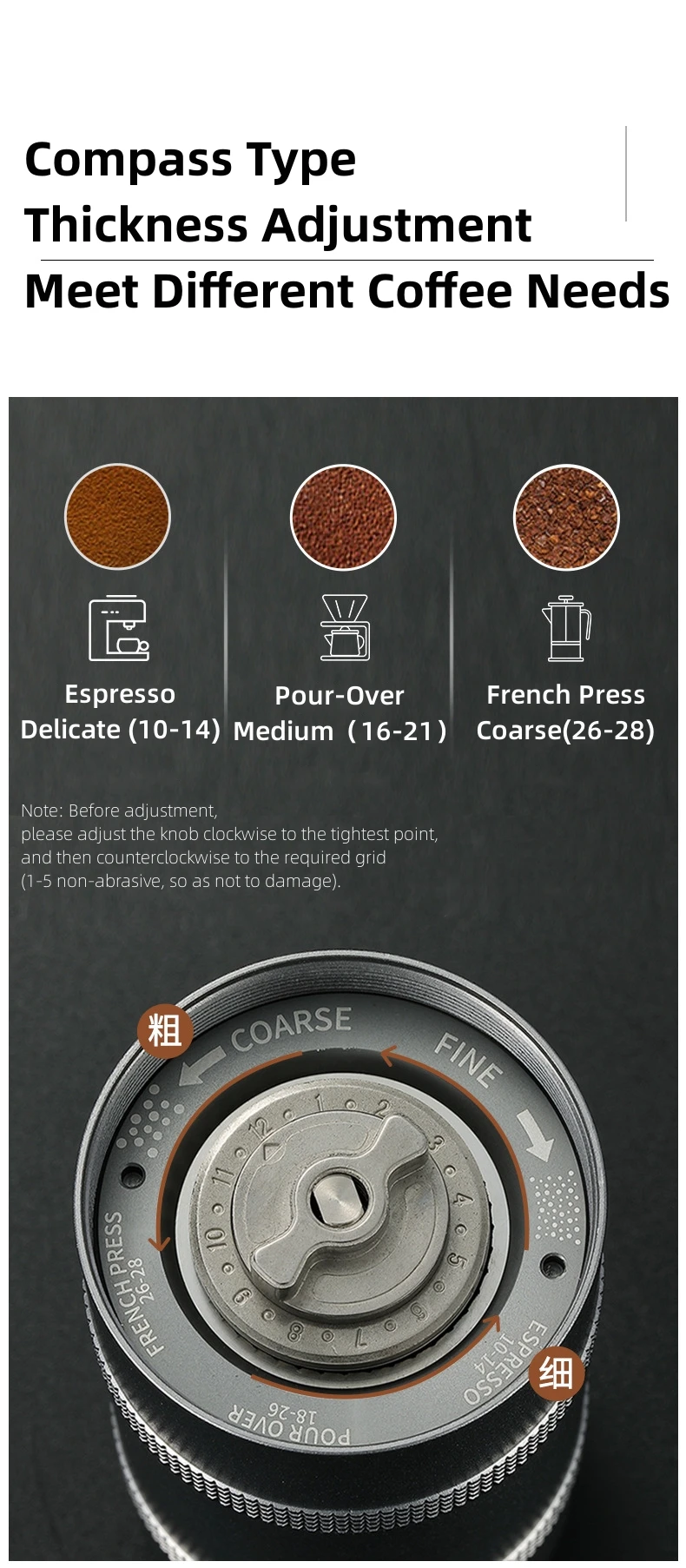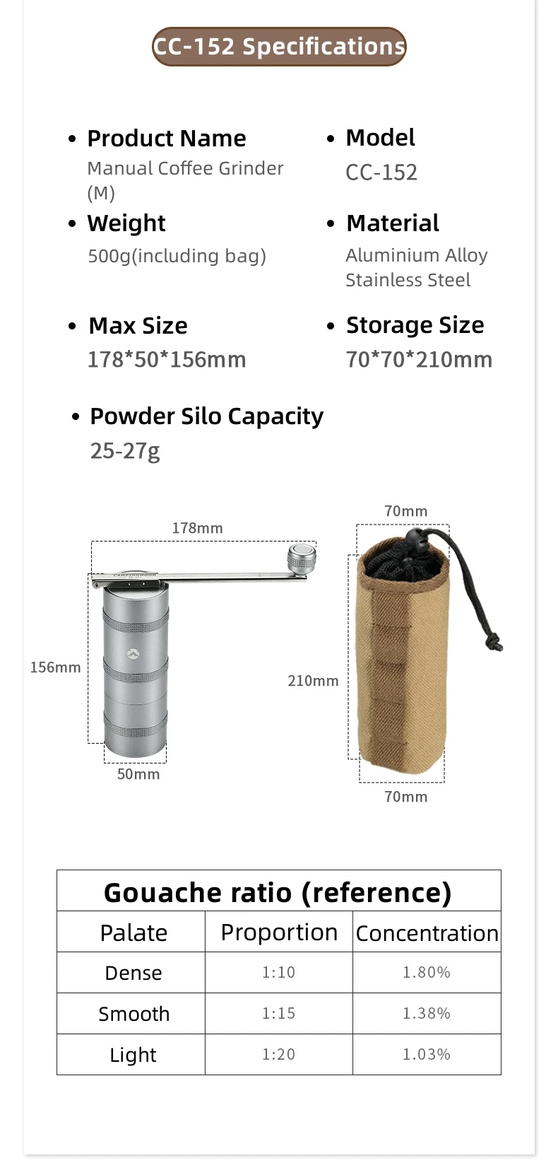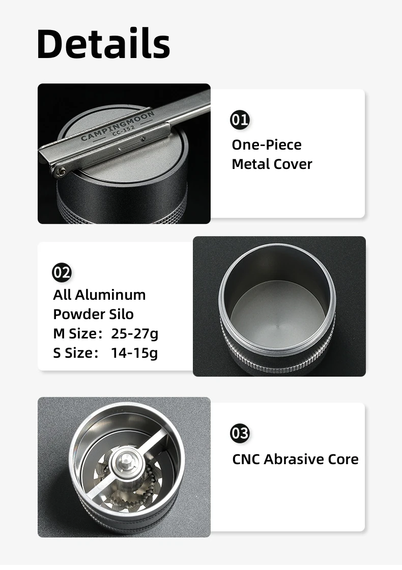CAMPINGMOON CC-115/152 Manual Coffee Grinder Portable Premium Coffee Bean Mill Stainless Steel Camping Outdoor Hand Crank Coffee Grounds Maker Grinding Equipment Camping Moon Small Medium