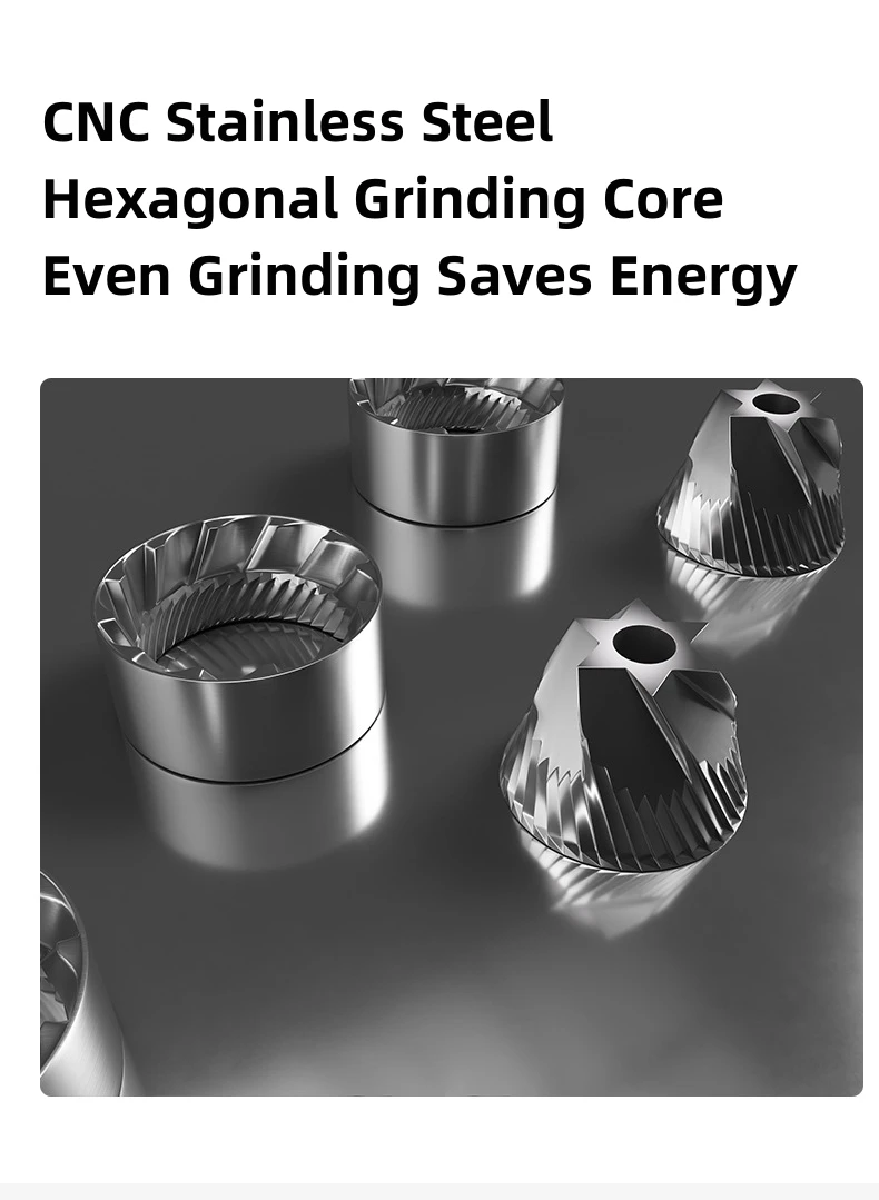 Stainless steel grinding core, which can quickly and evenly cut beans and grind smoothly.