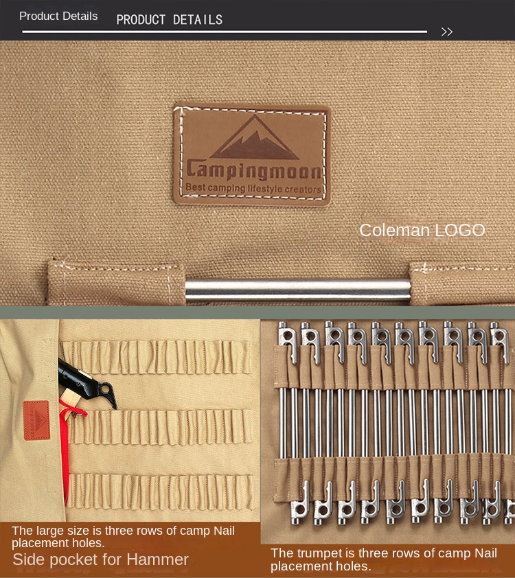 Campingmoon Ground Nail Storage Canvas Bag Portable Foldable Peg Stakes Hammer Ground Nail Bag Durable Easy To Carry Outdoor Camping B-135 B126
