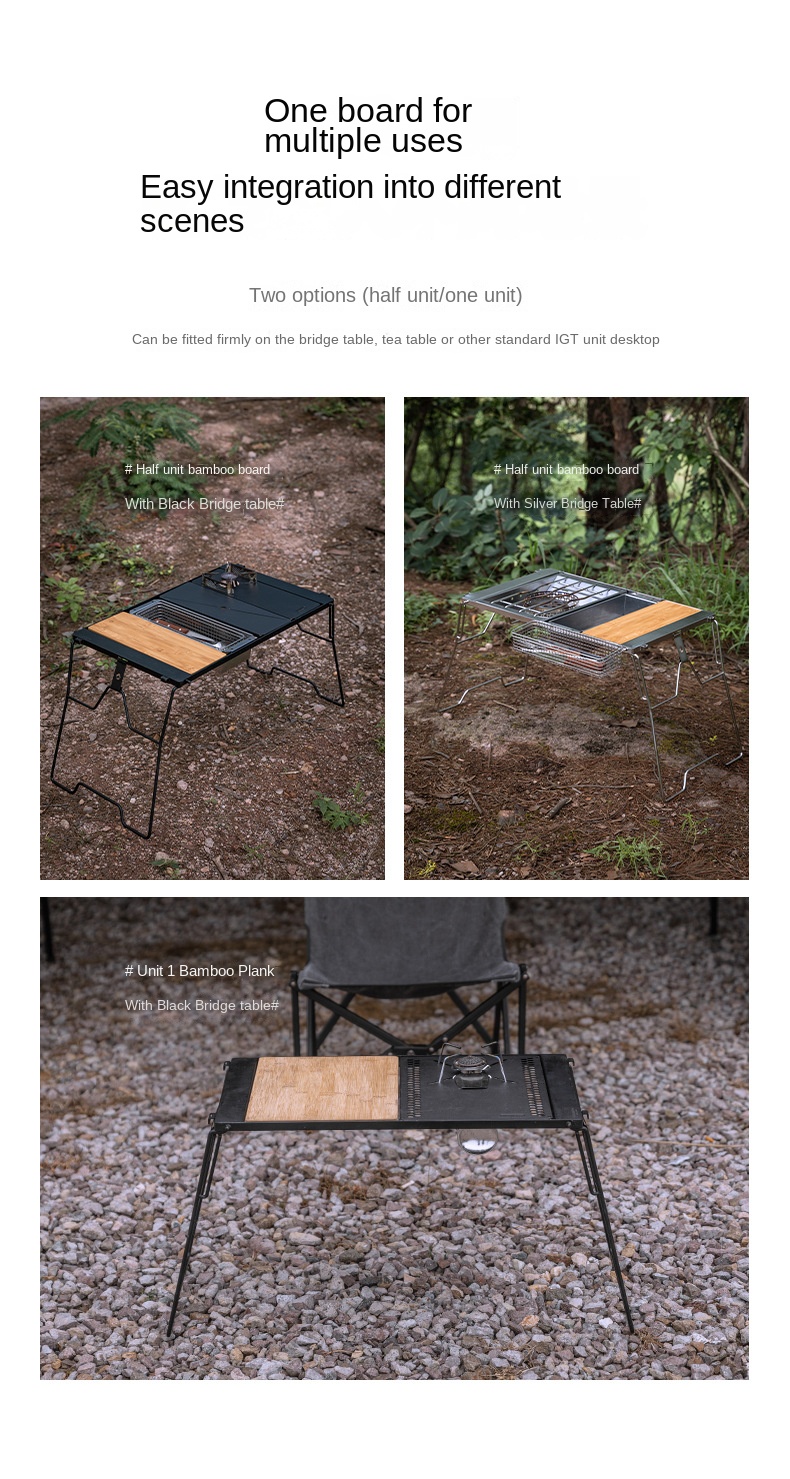 Campingmoon IGT Bamboo Board Plate Cutting Board For Chopping & Cover Integrated Grill Table Available In 1 & 1/2-Unit Size Outdoor Ck-P25 CK-P12