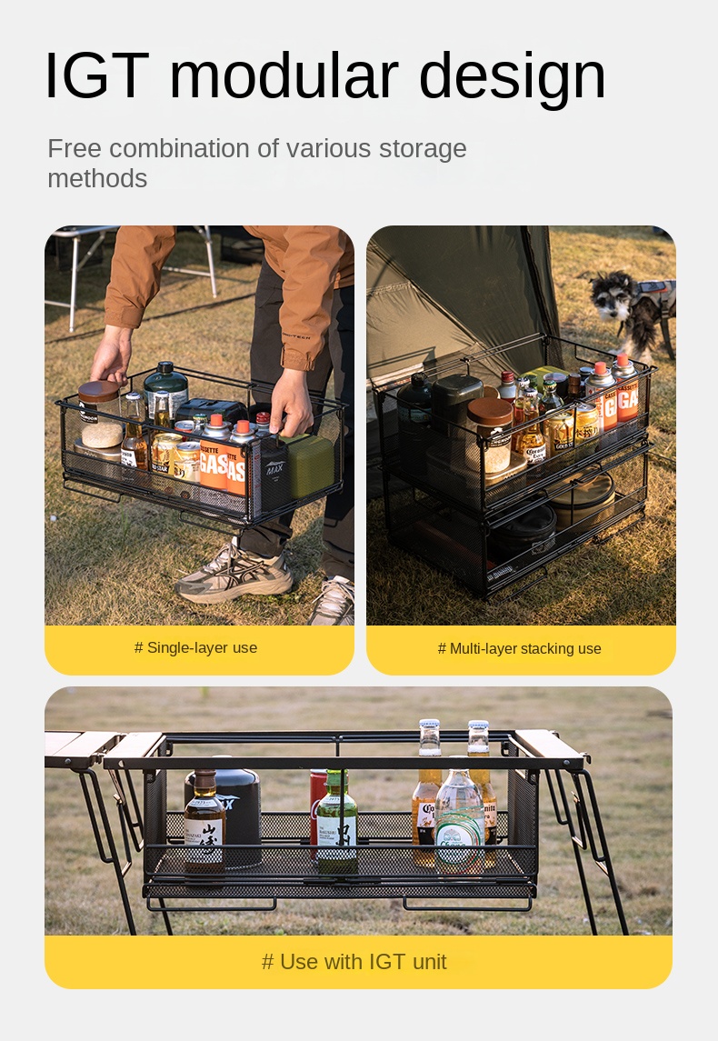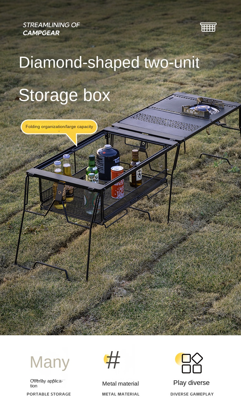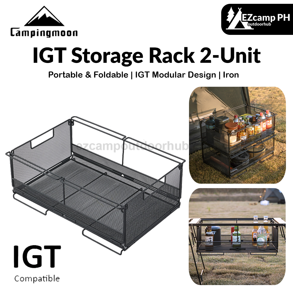 Campingmoon IGT Storage Rack 2-Unit Multipurpose Integrated Grill Table Stackable Rack Collapsible Outdoor Folding Desktop Storage Container CK-51BK