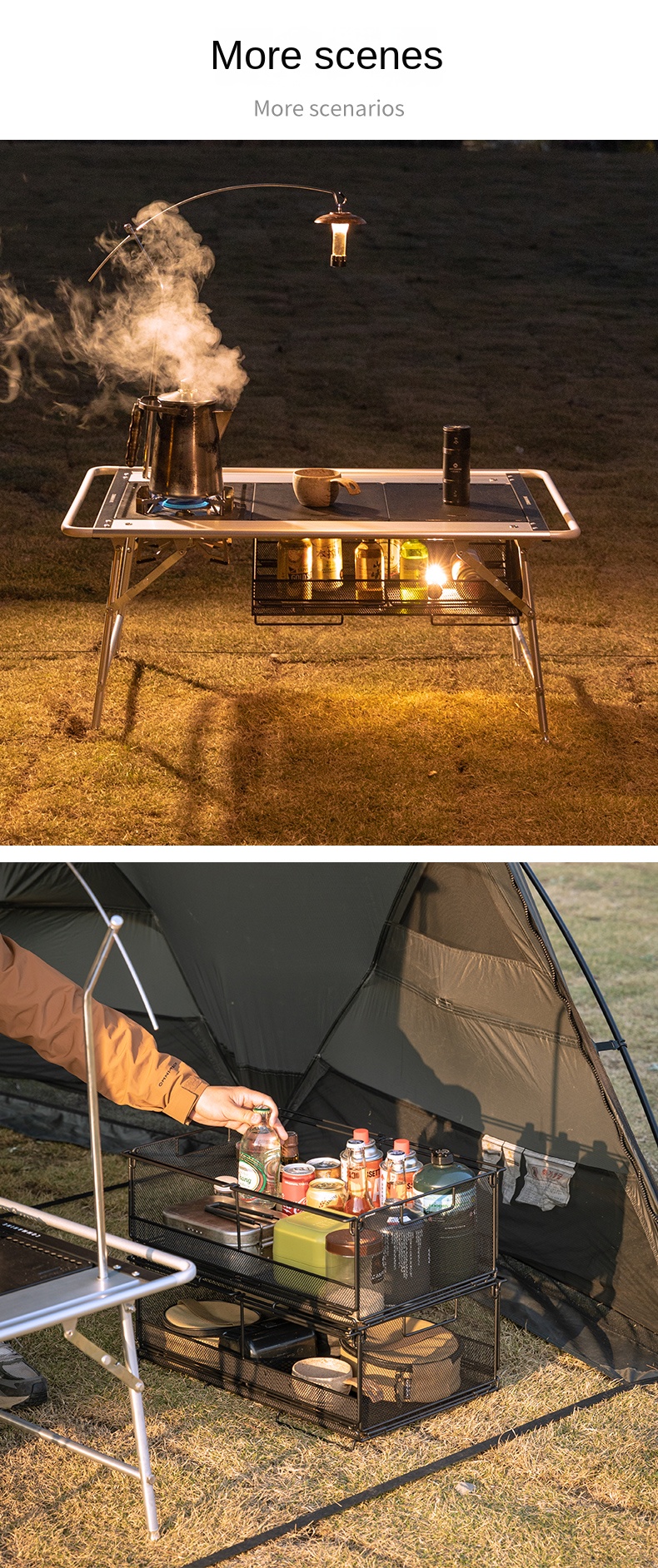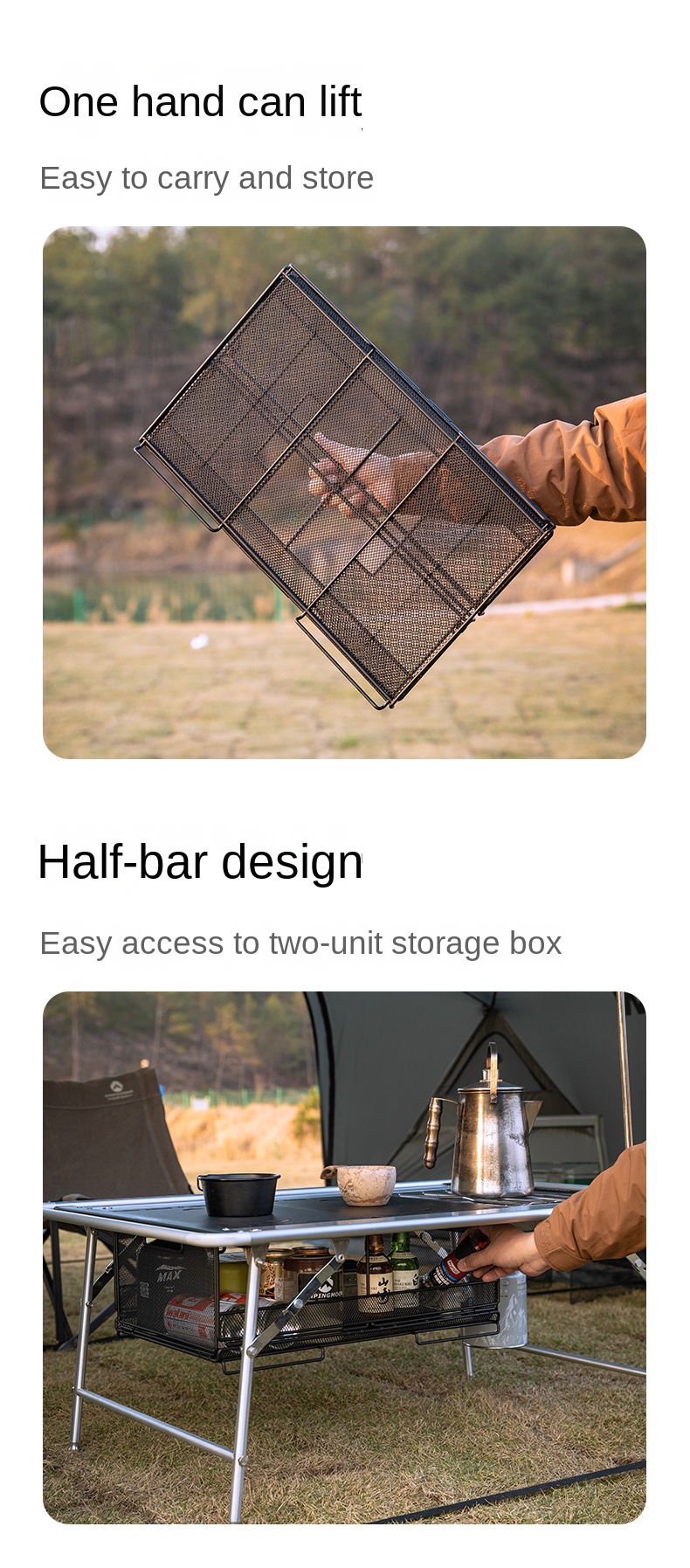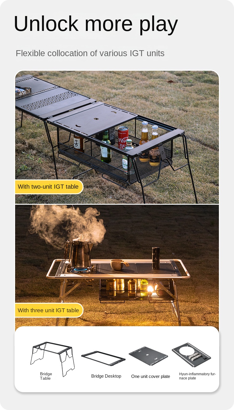 Campingmoon IGT Storage Rack 2-Unit Multipurpose Integrated Grill Table Stackable Rack Collapsible Outdoor Folding Desktop Storage Container CK-51BK