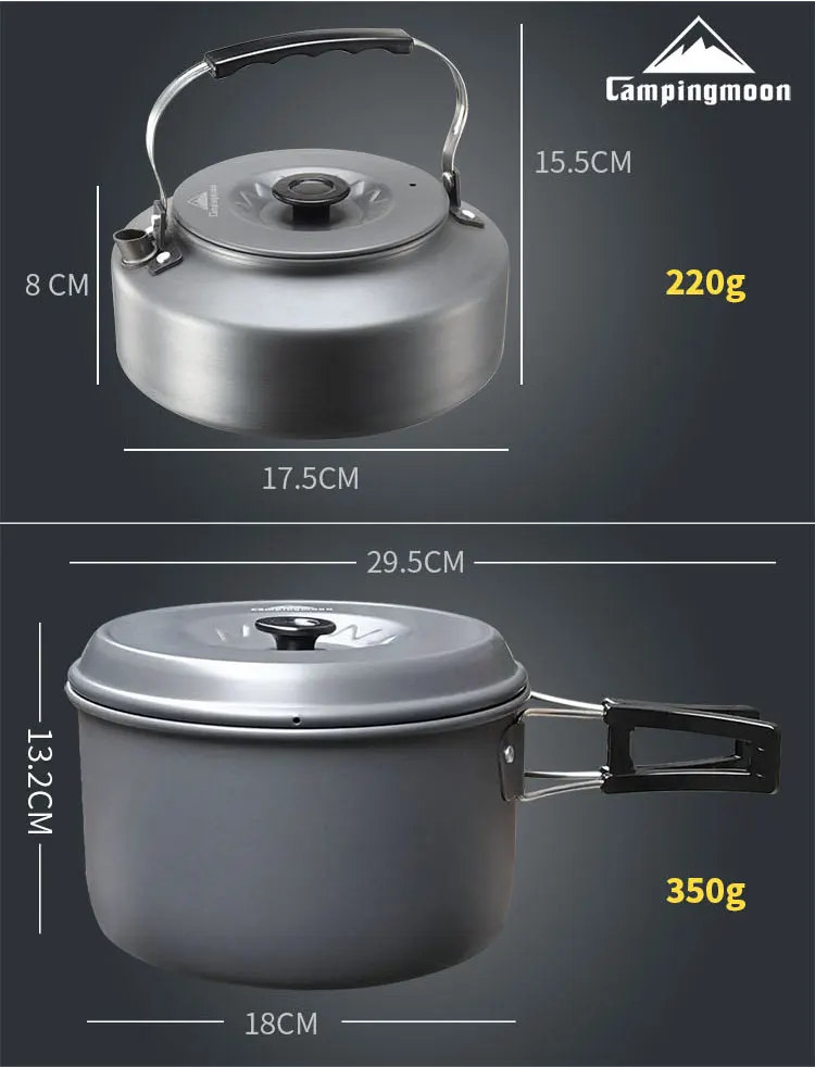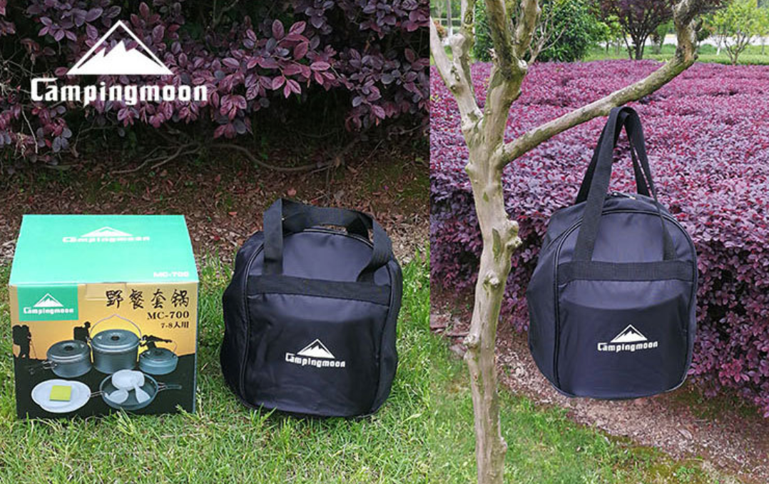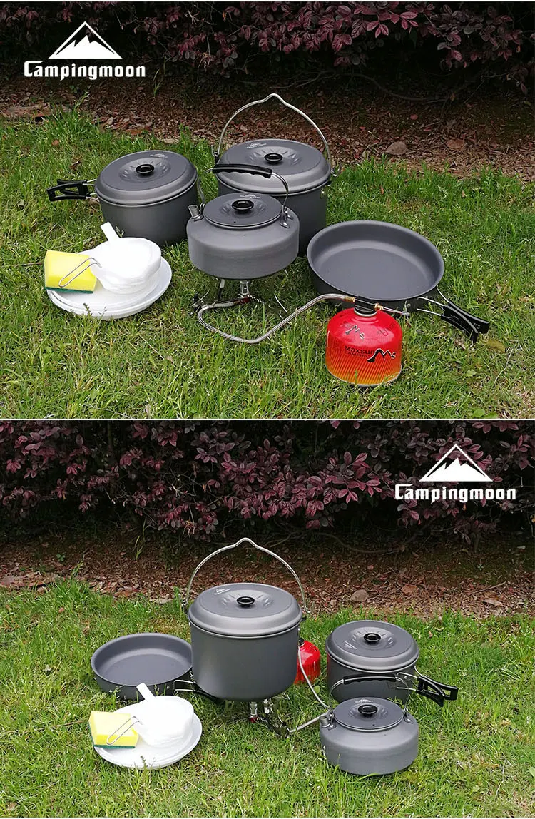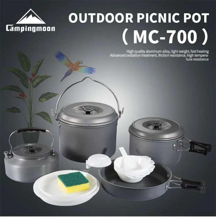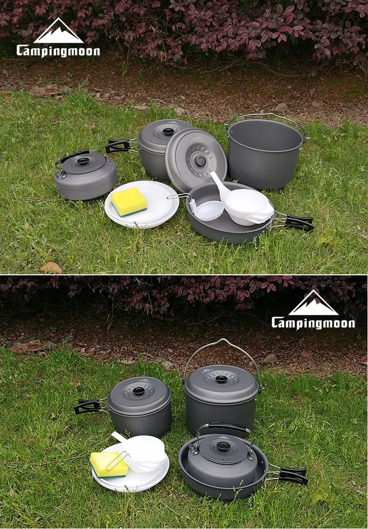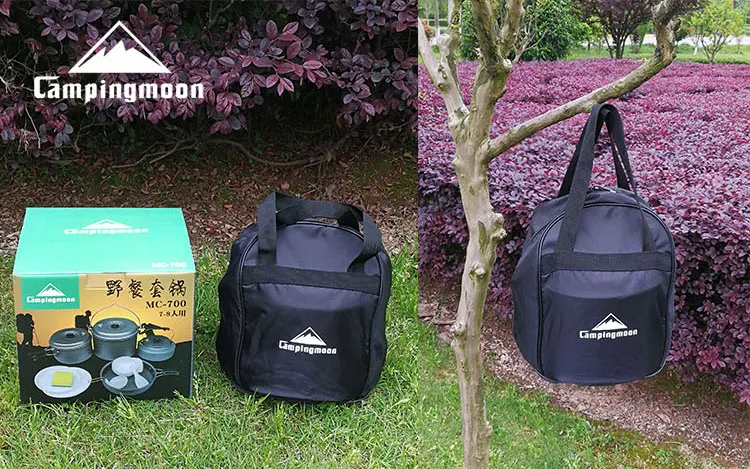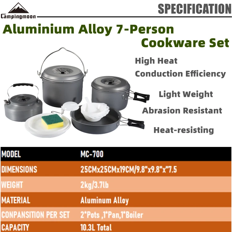 CAMPINGMOON MC-700 7 Person Camping Cookware Set Aluminum Alloy Ultralight Portable Outdoor Picnic Cooking Pot Frying Pan Kettle with Storage Bag Large Complete Package Set