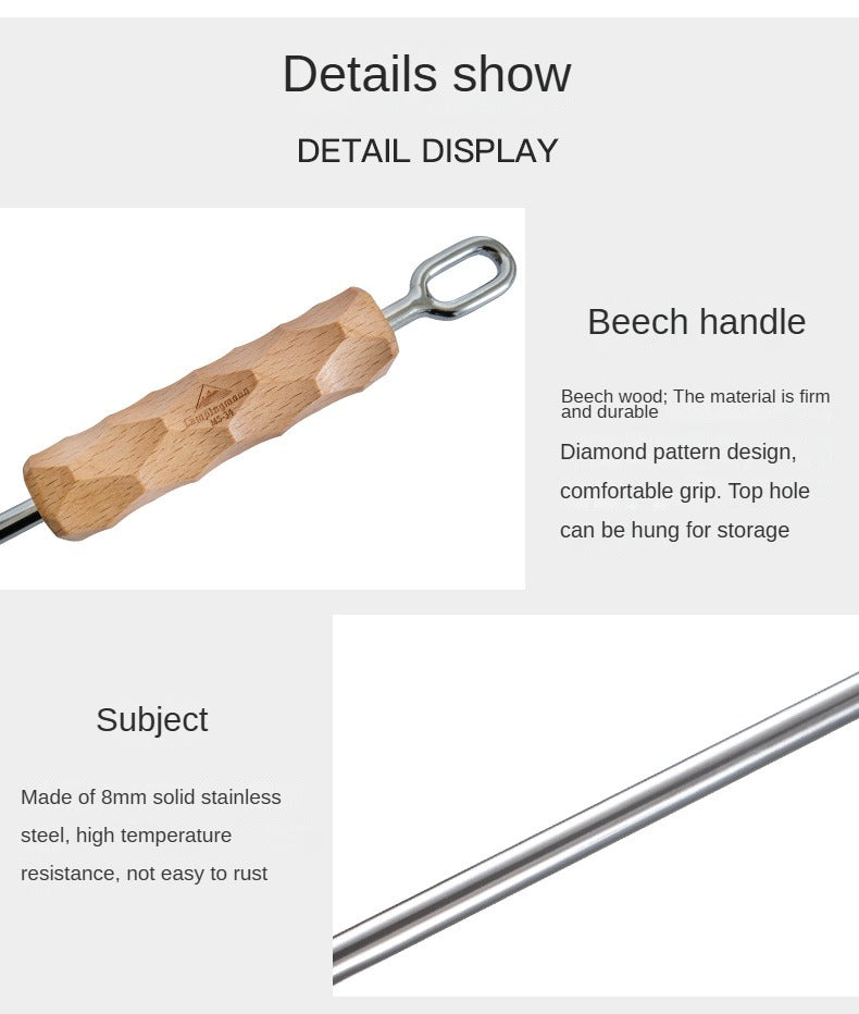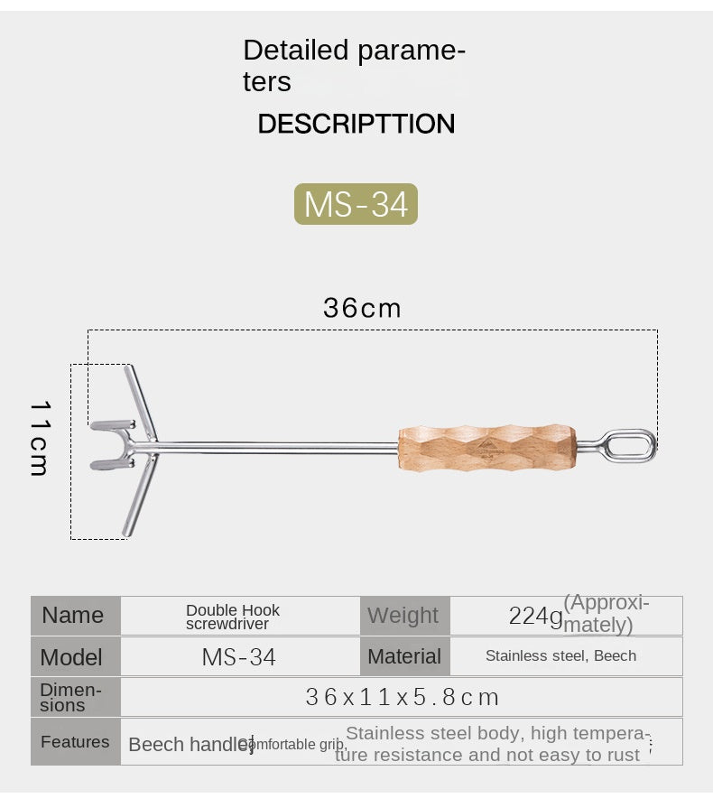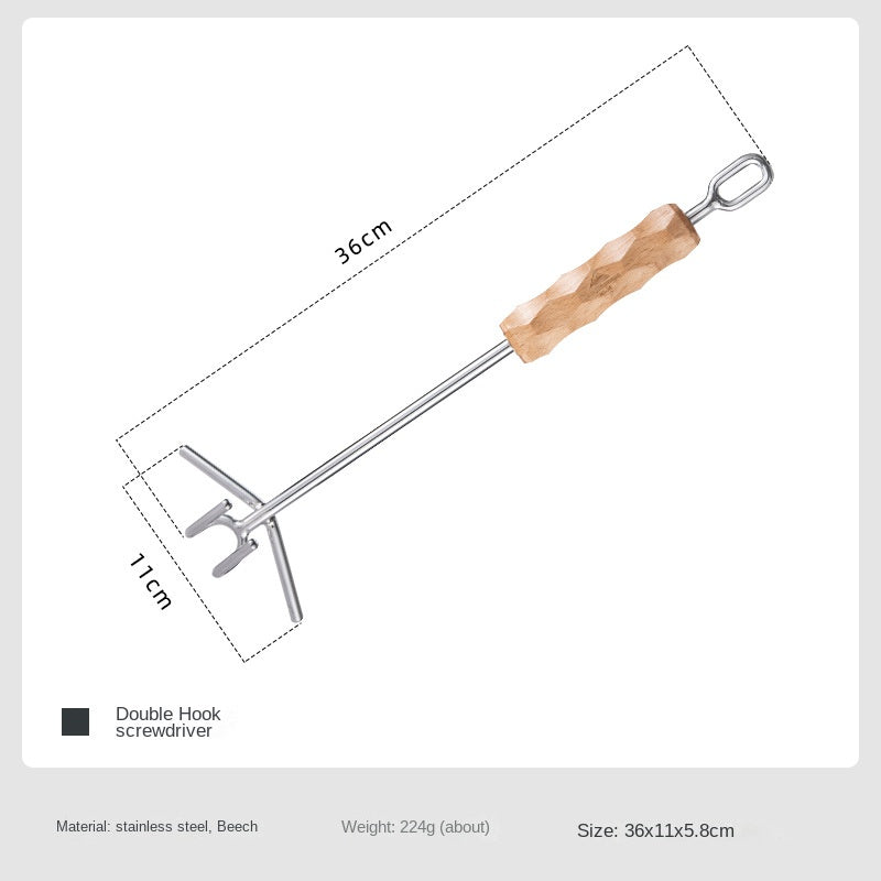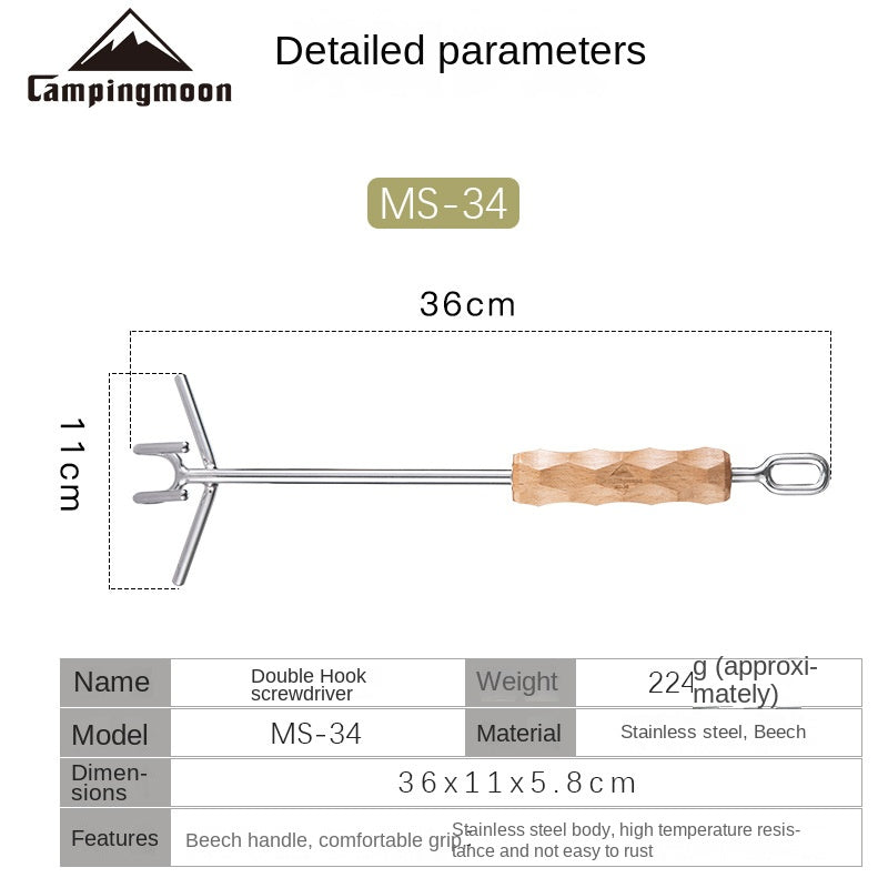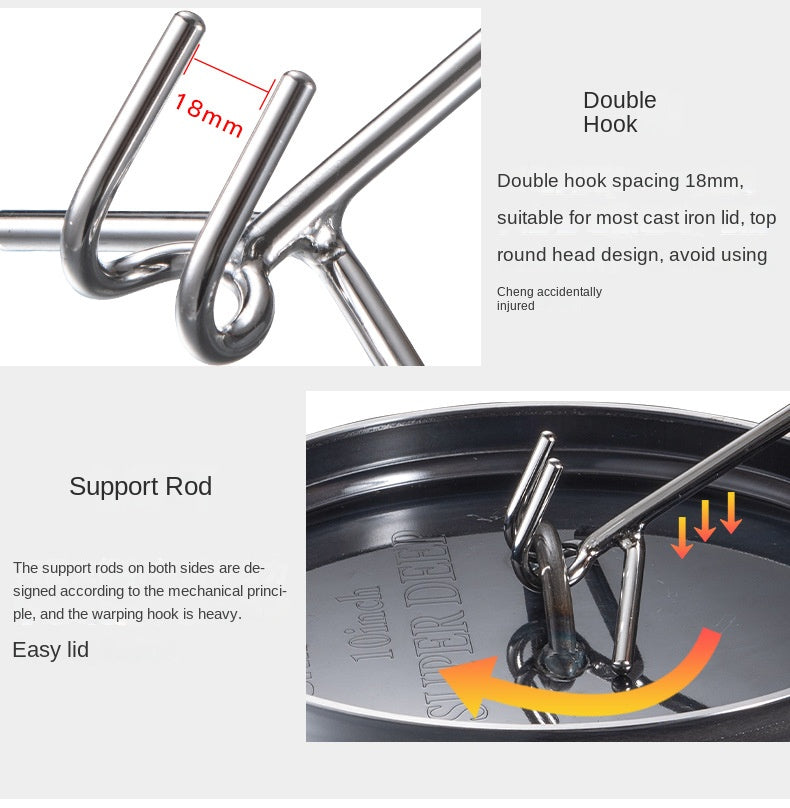 Campingmoon MS-34 Double Hook Pot Lid Lifter Portable Stainless Steel Cookware Hot Cast Iron Cover Pan Skillet Holder Wooden Handle