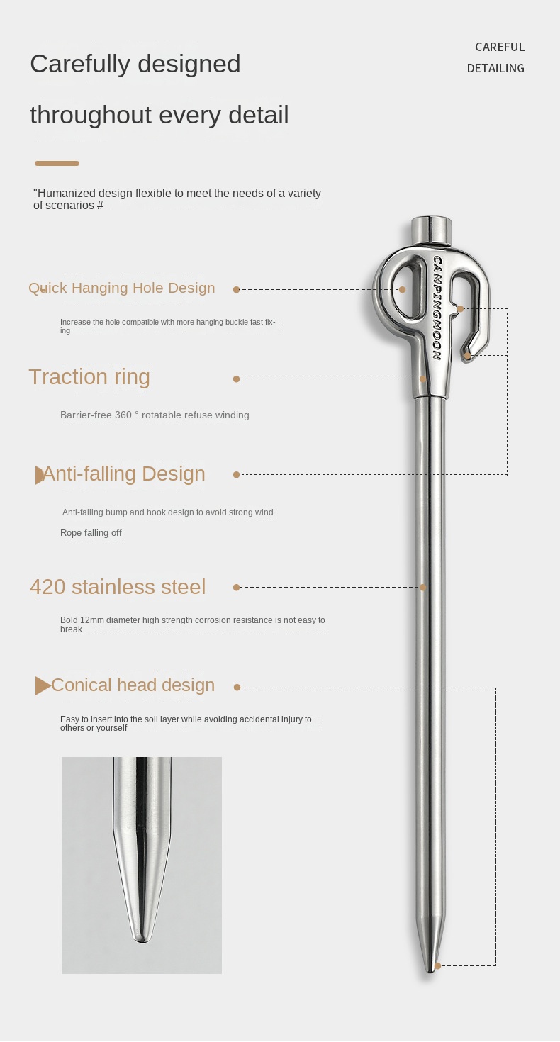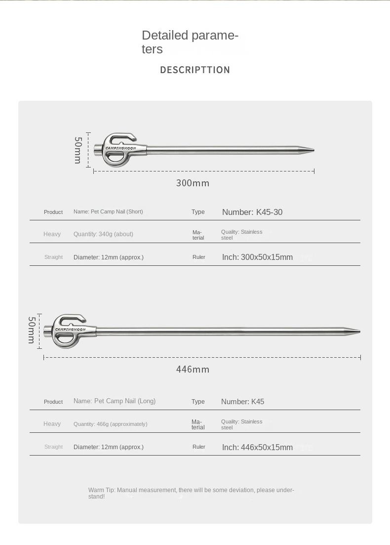 Campingmoon Pet Peg Ground Nail Outdoor Portable Ultralight Camping 30/45 cm Stainless Steel 360 Rotating Stakes Dog Leash Tether Pile K45 K45-30