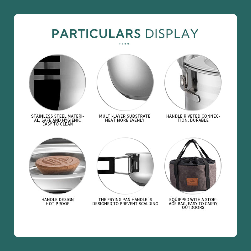 Product Name: Stainless Steel Camping Pot Set for up to 8 Person