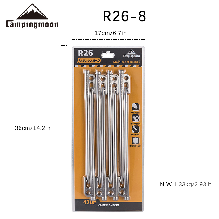 CAMPINGMOON Stainless Steel Peg Stakes Pack of 6 and 8 20cm 26cm 30cm 35cm 40cm Premium Heavy Duty Ground Nail Pegs Stake for Outdoor Camping Tent