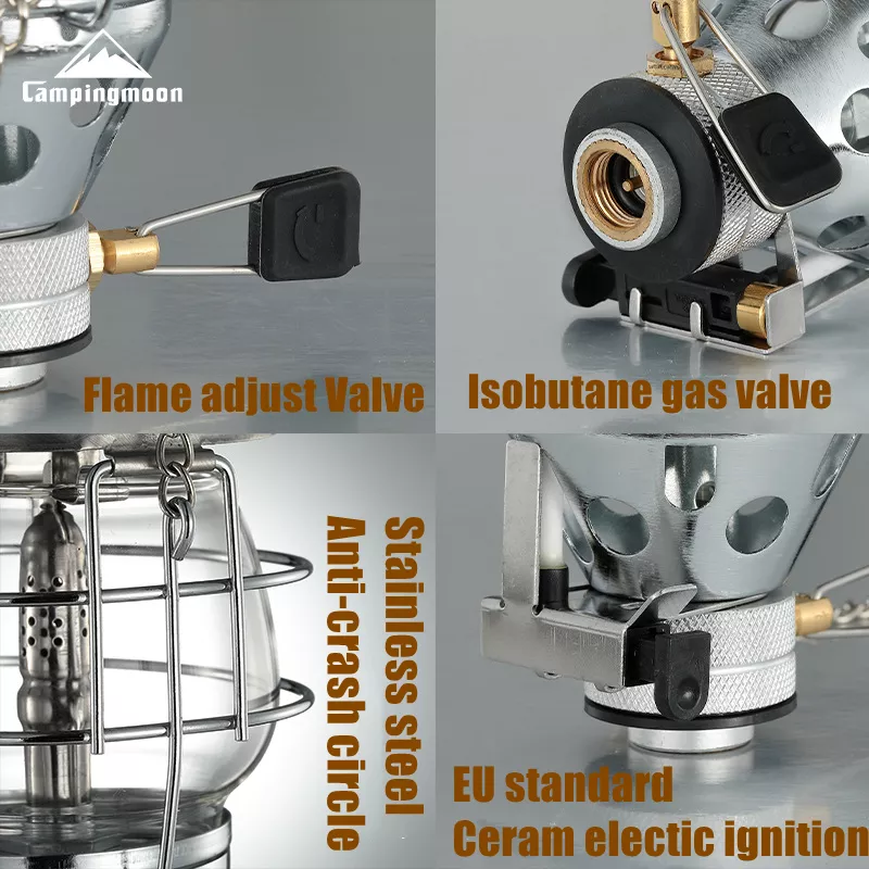 CAMPINGMOON T-4 Hanging Single Mantle Gas Butane Atmosphere Light Lantern Lamp For Screw Type Isobutane Fuel Pole Hang Light Electric Ignition Igniter
