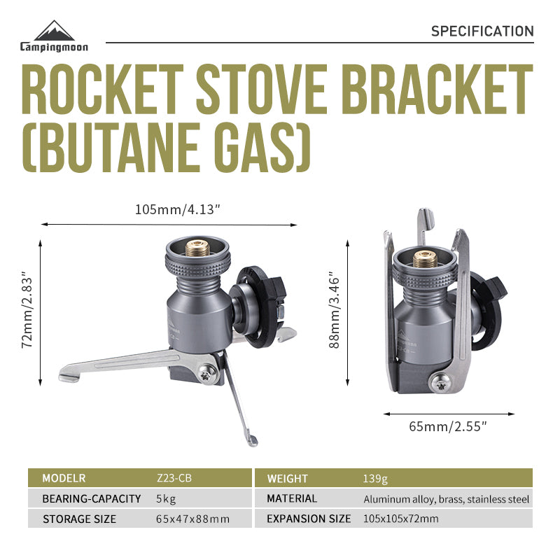 CAMPINGMOON BKZ23-CB Z23-CB Rocket Stove Bracket Black Stand Butane Canister Converter Adaptor Screw Type to Nozzle Standard Gas Fuel Adapter Mount