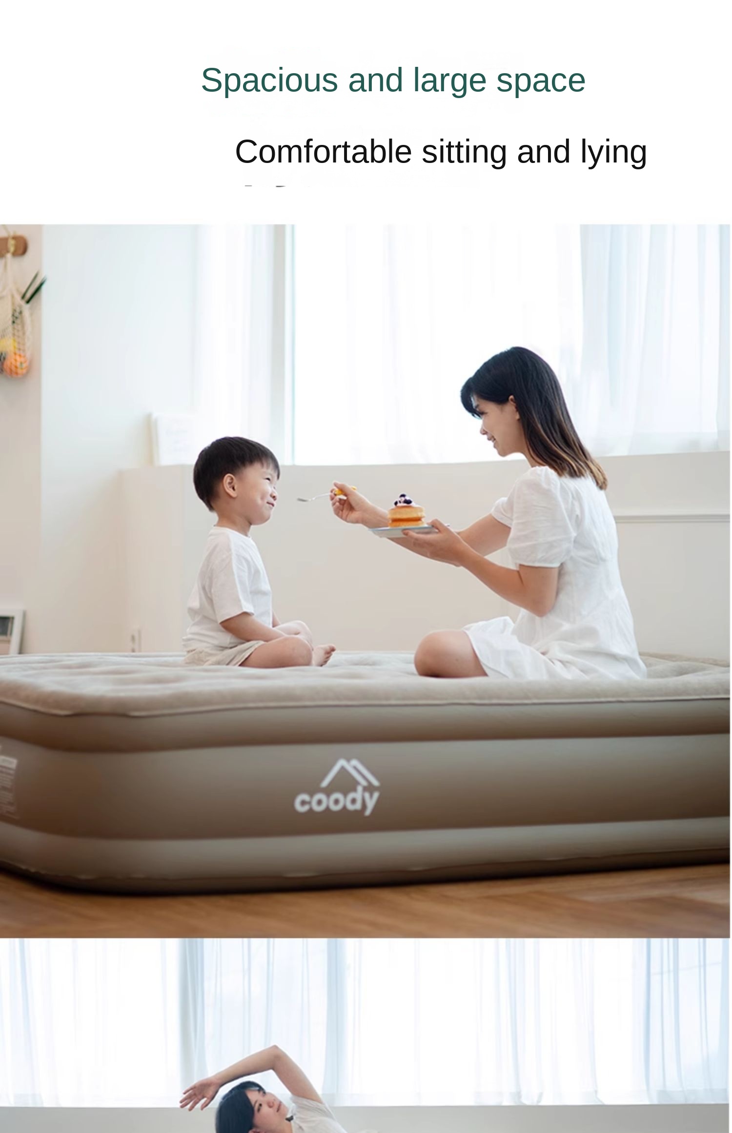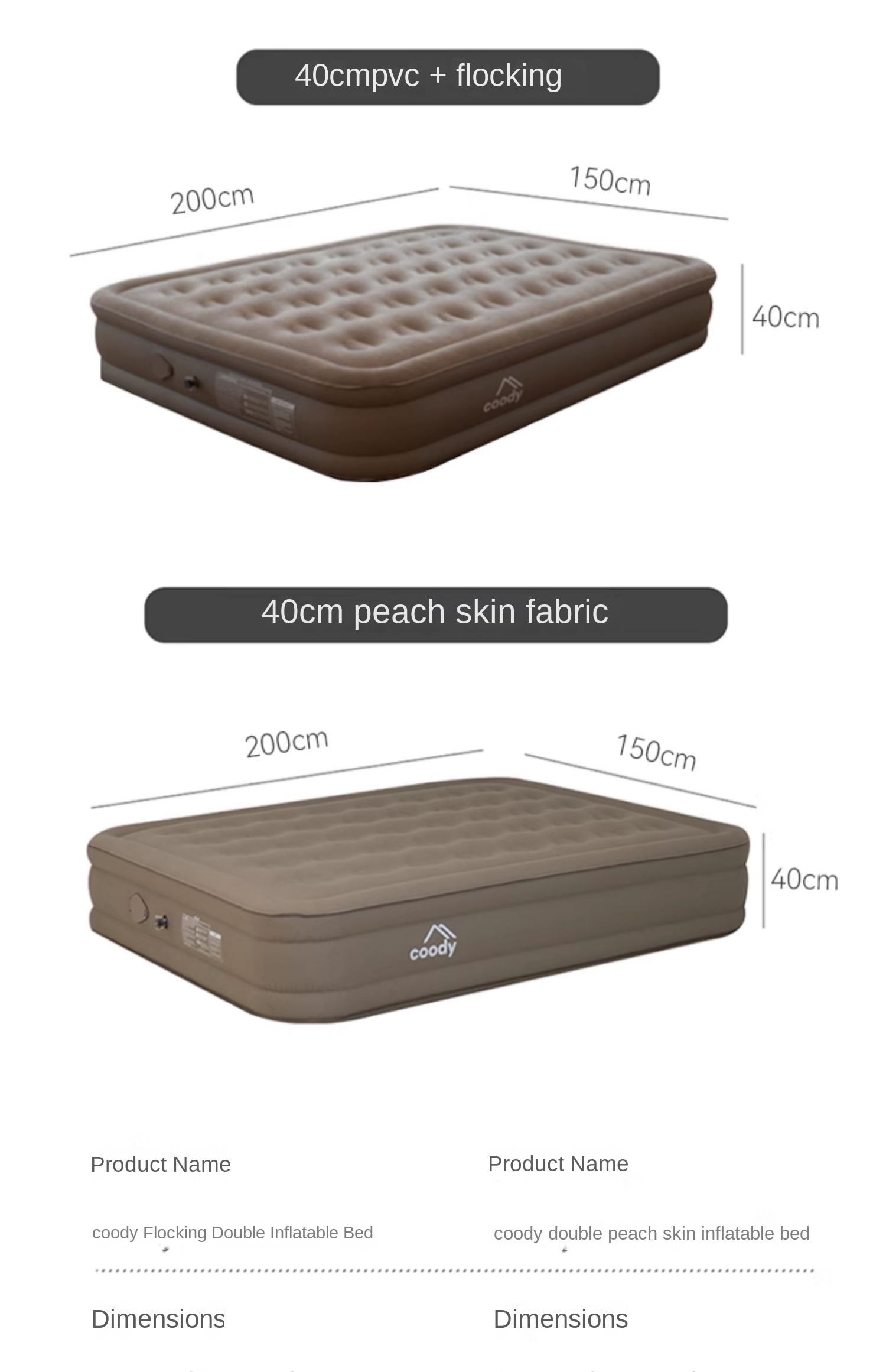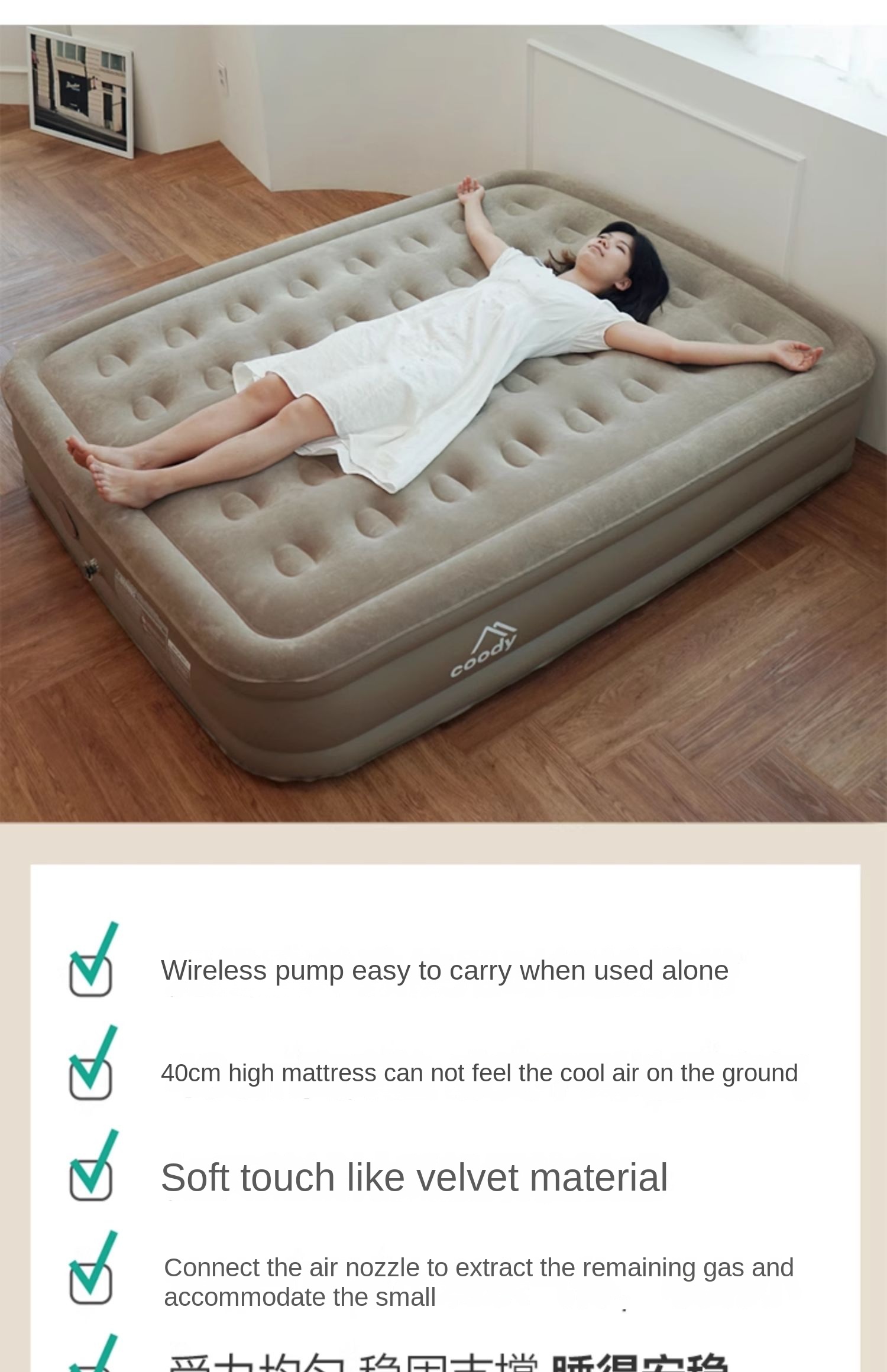Coody Air Bed Mattress Portable Foldable Double Queen Size 40cm High Sleeping Mat Moisture-proof Automatic Air Pump Camping Peach Skin Fleece Air Mat