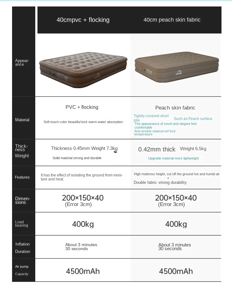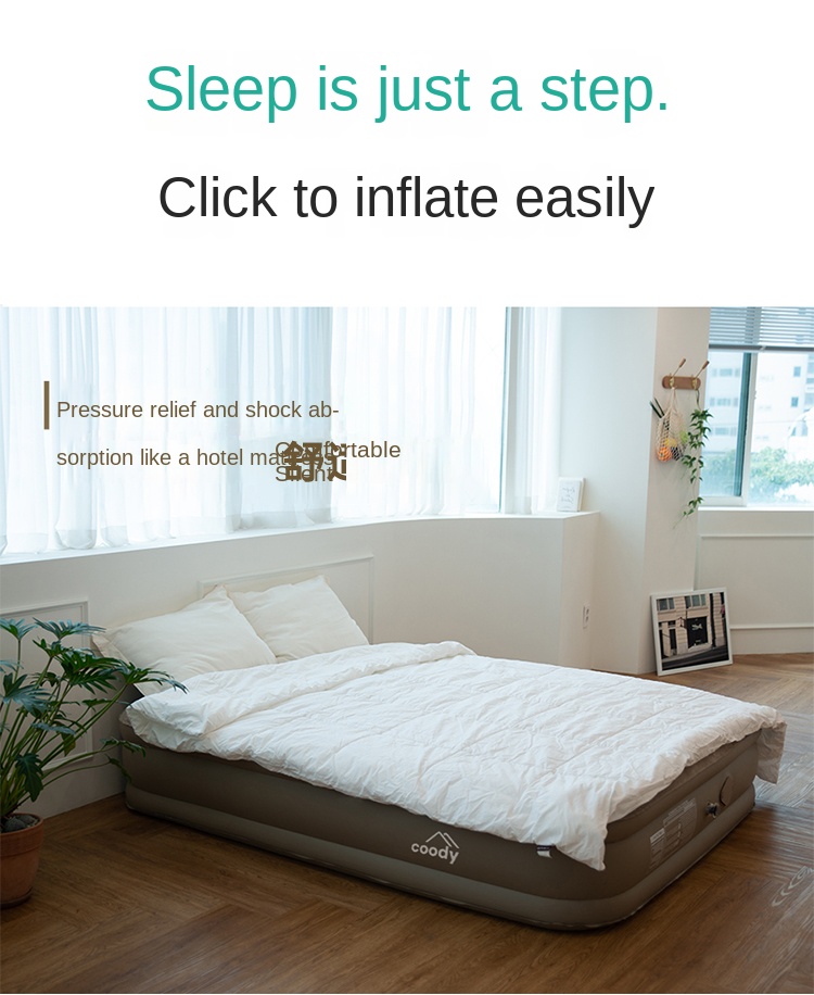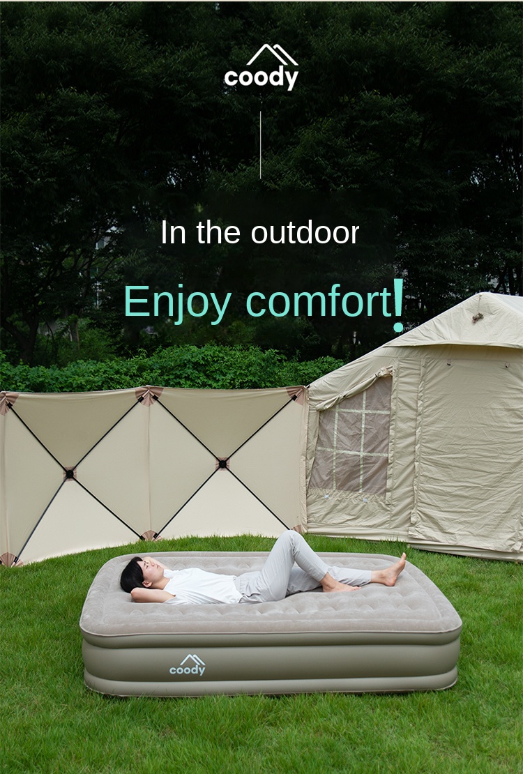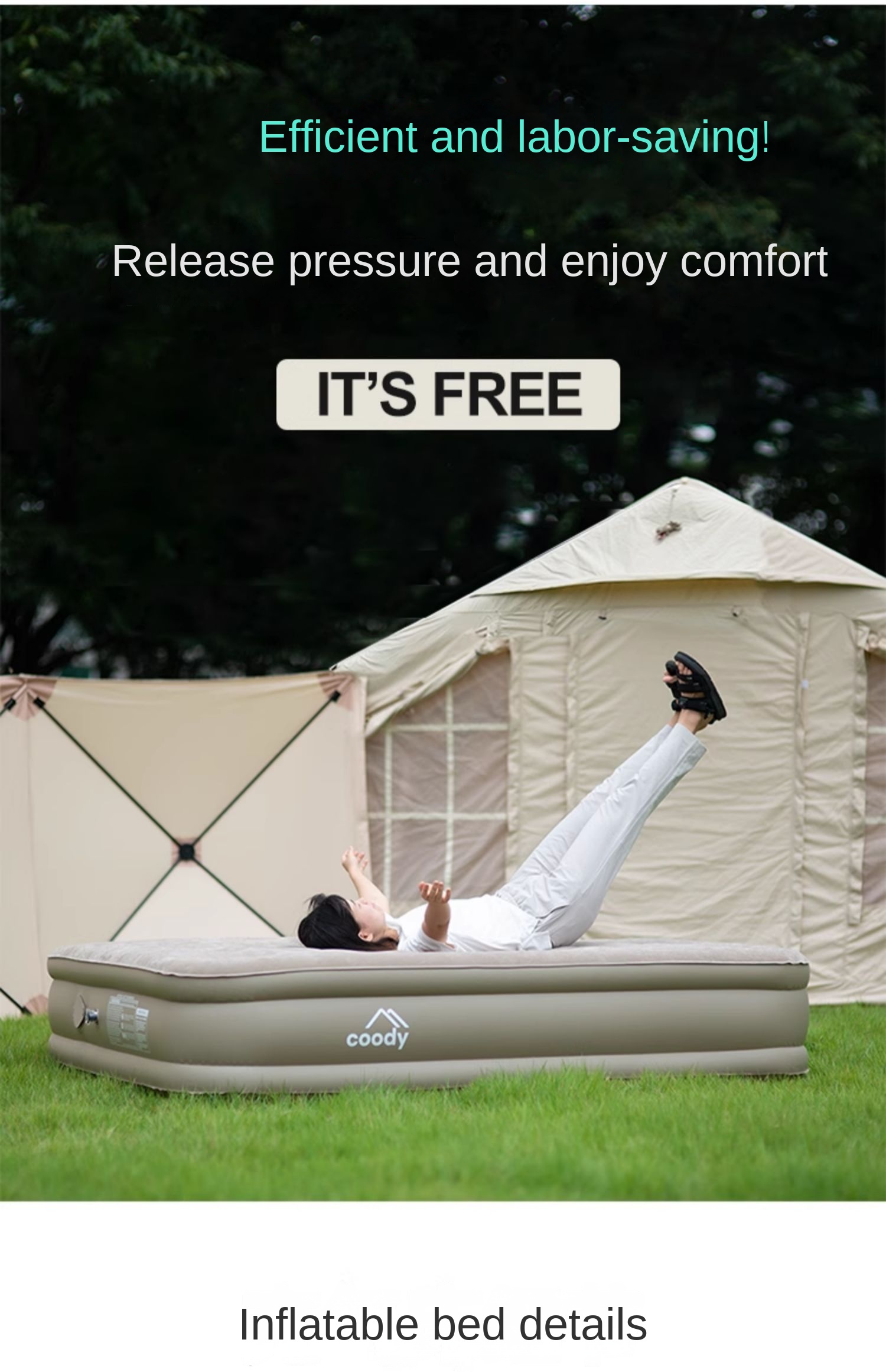 Coody Air Bed Mattress Portable Foldable Double Queen Size 40cm High Sleeping Mat Moisture-proof Automatic Air Pump Camping Peach Skin Fleece Air Mat