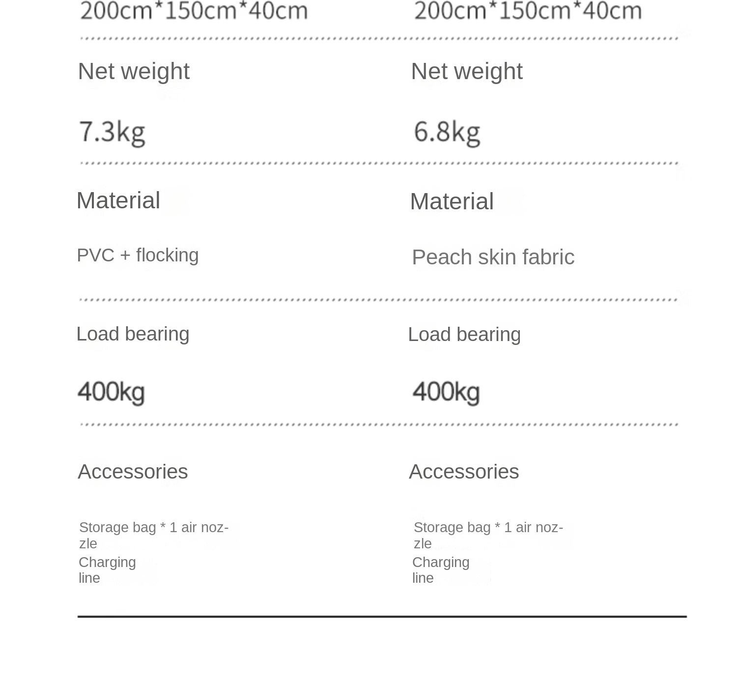 Weight: 7.kg (PVC Flocking Model) / 6.8kg (Peach Velvet Model)