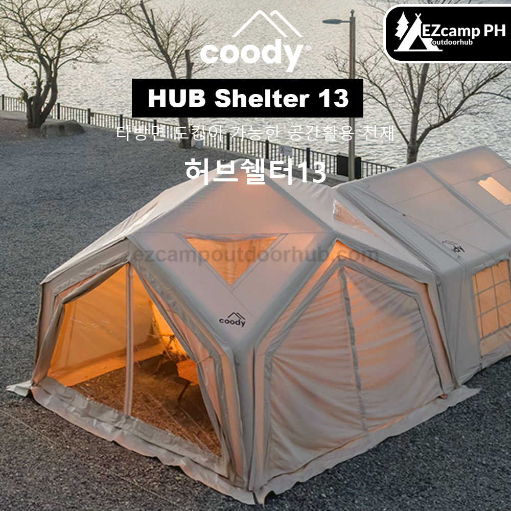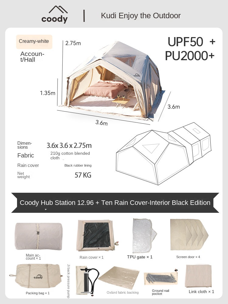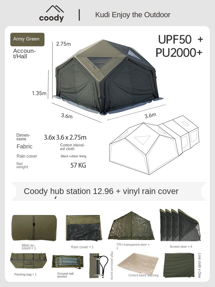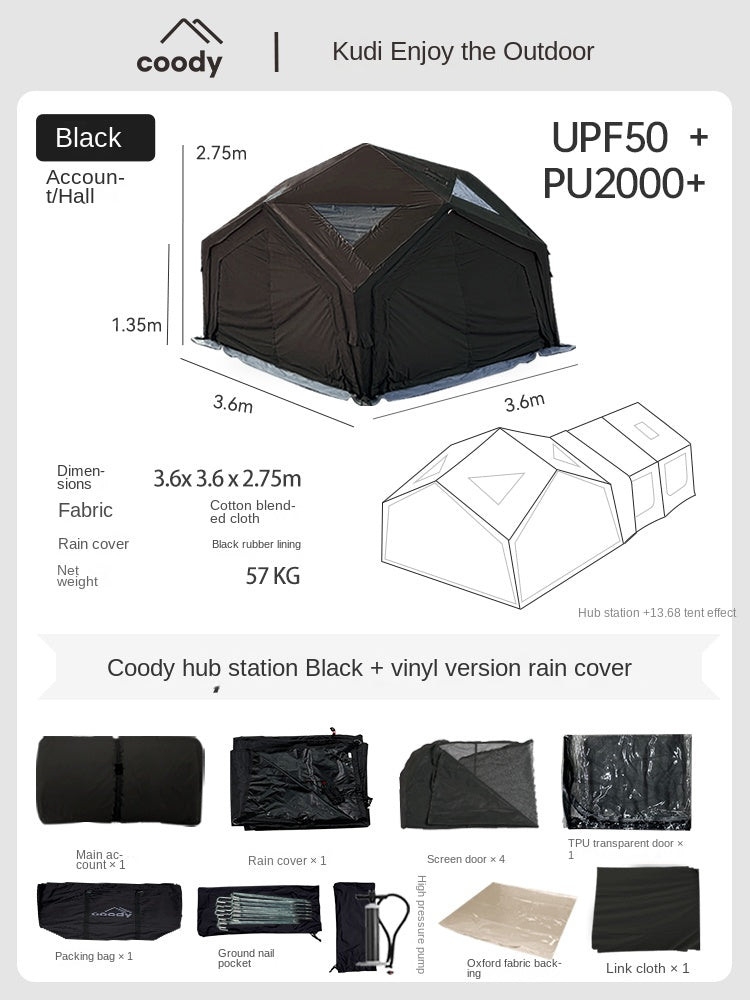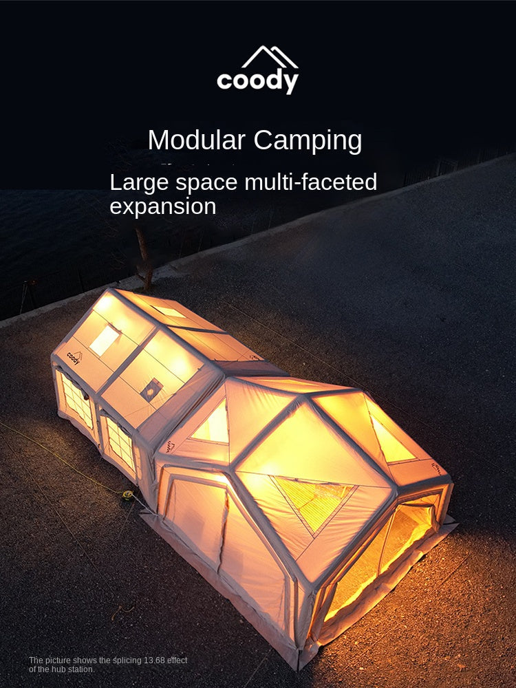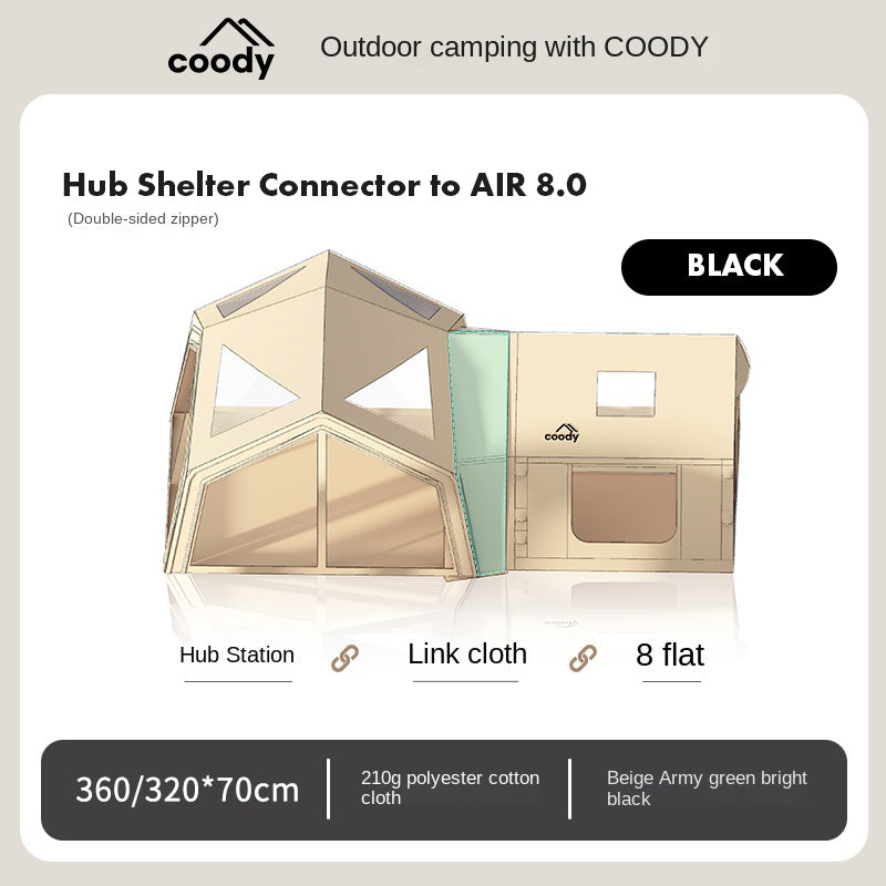 Coody HUB Shelter 13 Air Inflatable Outdoor Camping Tent 4-6 Persons Main Hub Modular Station Air Tents Waterproof Black Vinyl Coated Sunscreen Rain Cover