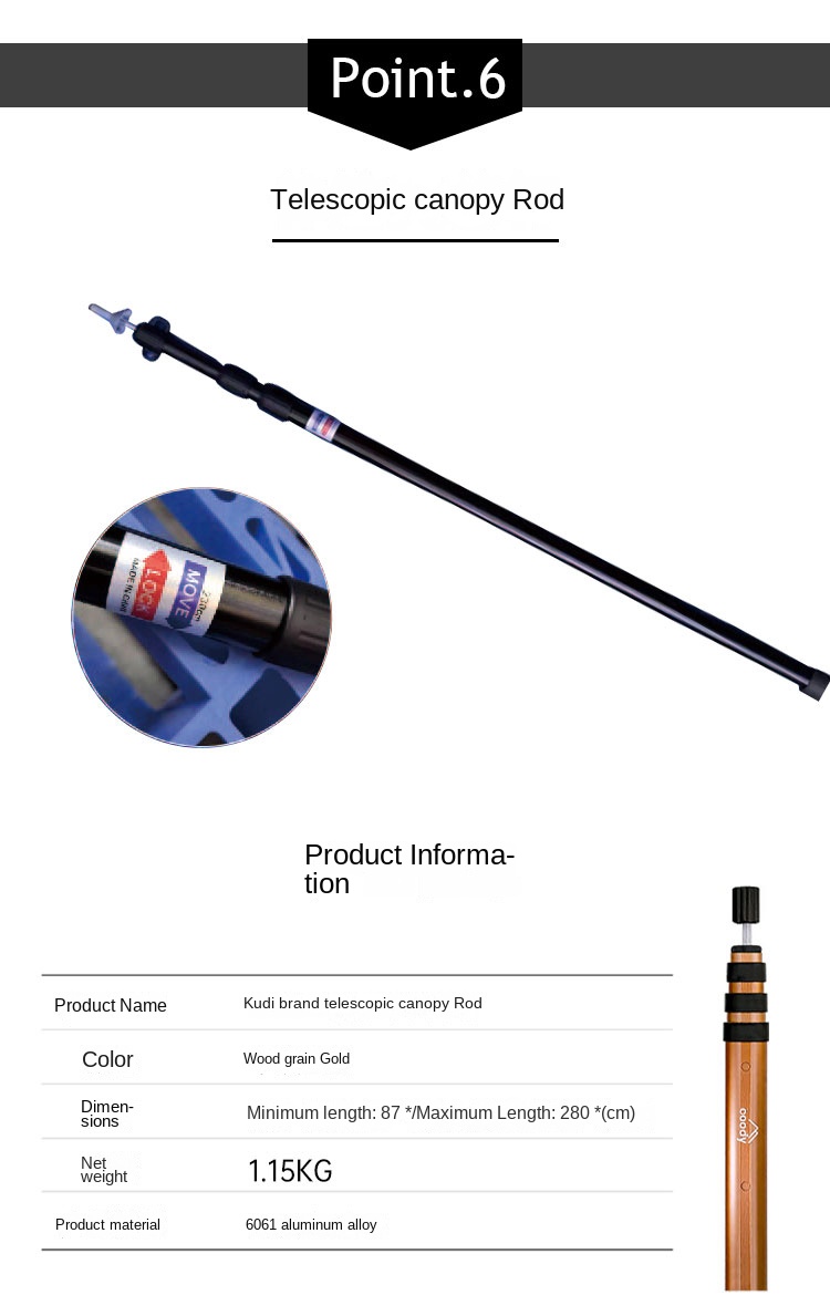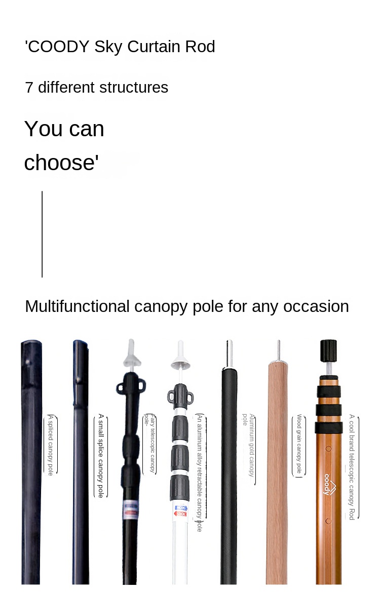 Coody Premium Tent Canopy Poles Portable Foldable Lightweight Telescopic Support Pole Awning Tarp Aluminum Alloy