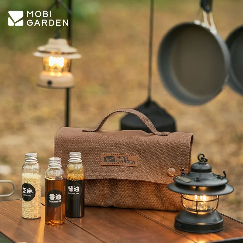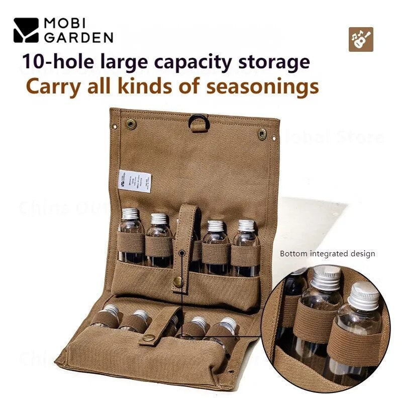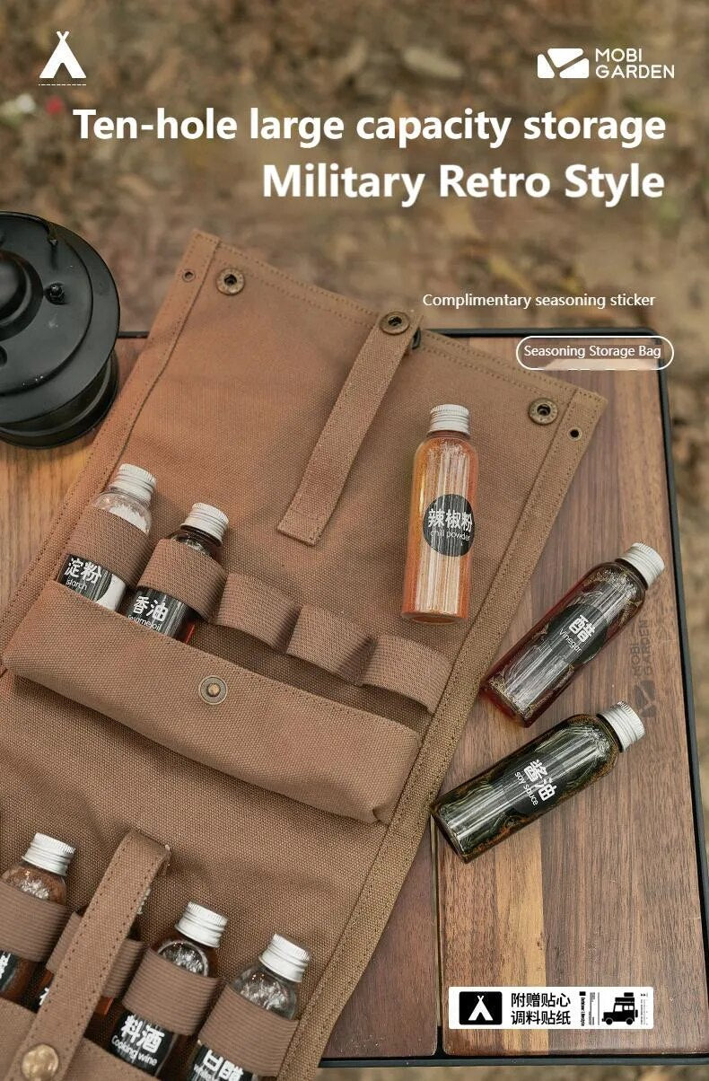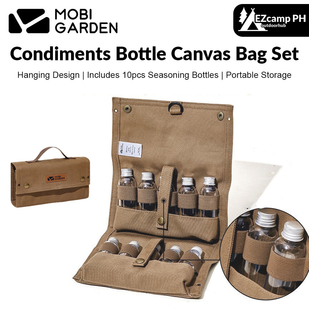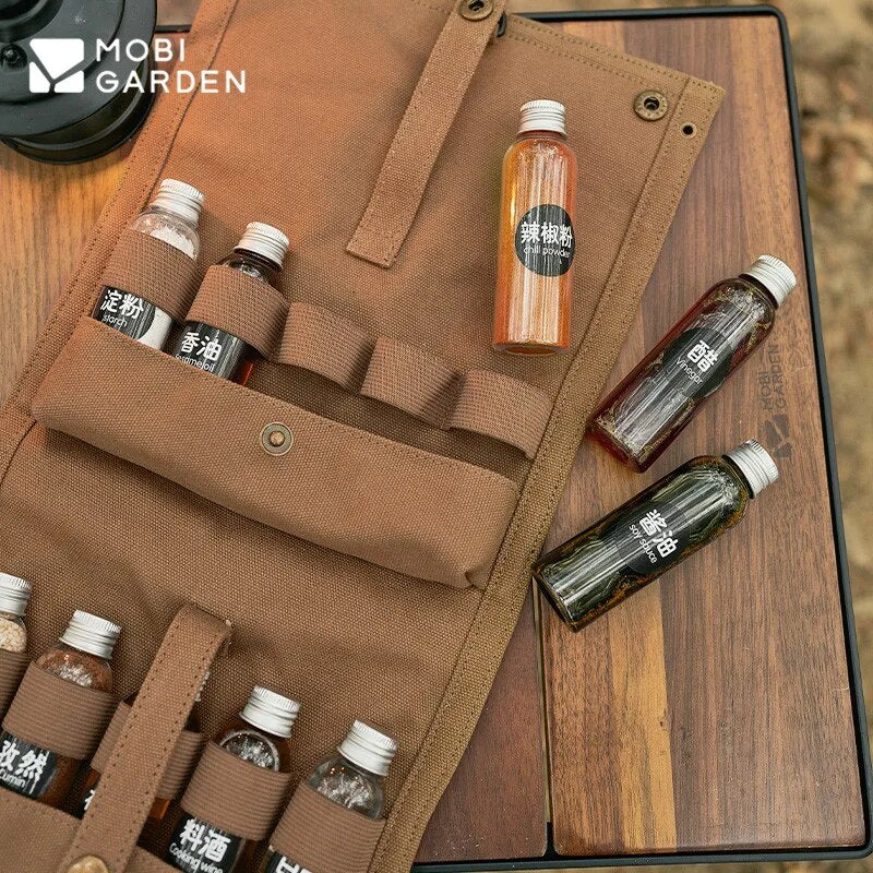 Mobi Garden Condiments Bottle Canvas Storage Bag Set Seasoning Portable Ultralight Outdoor Camping Picnic Kitchen Utensil Sauce 10pcs Mini Canister Container Hanging Convenient Mobigarden