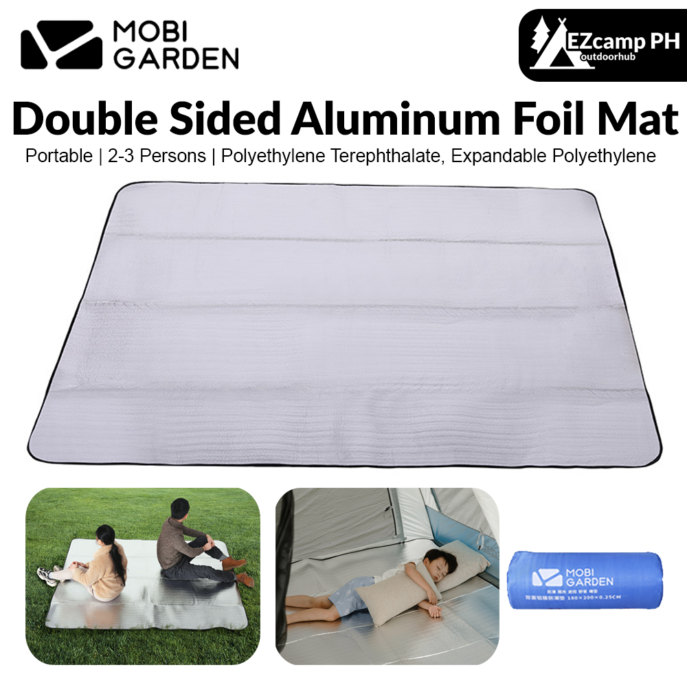 MOBI GARDEN Double Sided Aluminum Foil Mat Outdoor Ultralight Foam Film Folding Hiking Camping Travel Picnic Beach Moisture-proof Mattress Waterproof Silver Air Mat Original Mobi Garden
