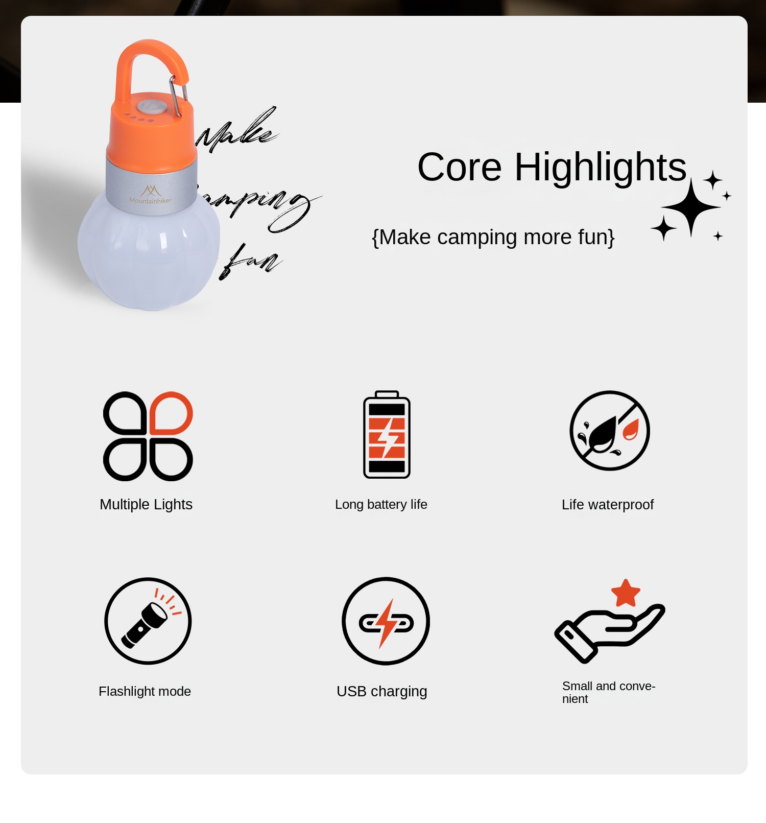 Mountainhiker Hanging Hook Lantern Portable Lamp Outdoor Waterproof USB C Charging Wireless Bottle Cap LED Light 2-20H Battery Working Time