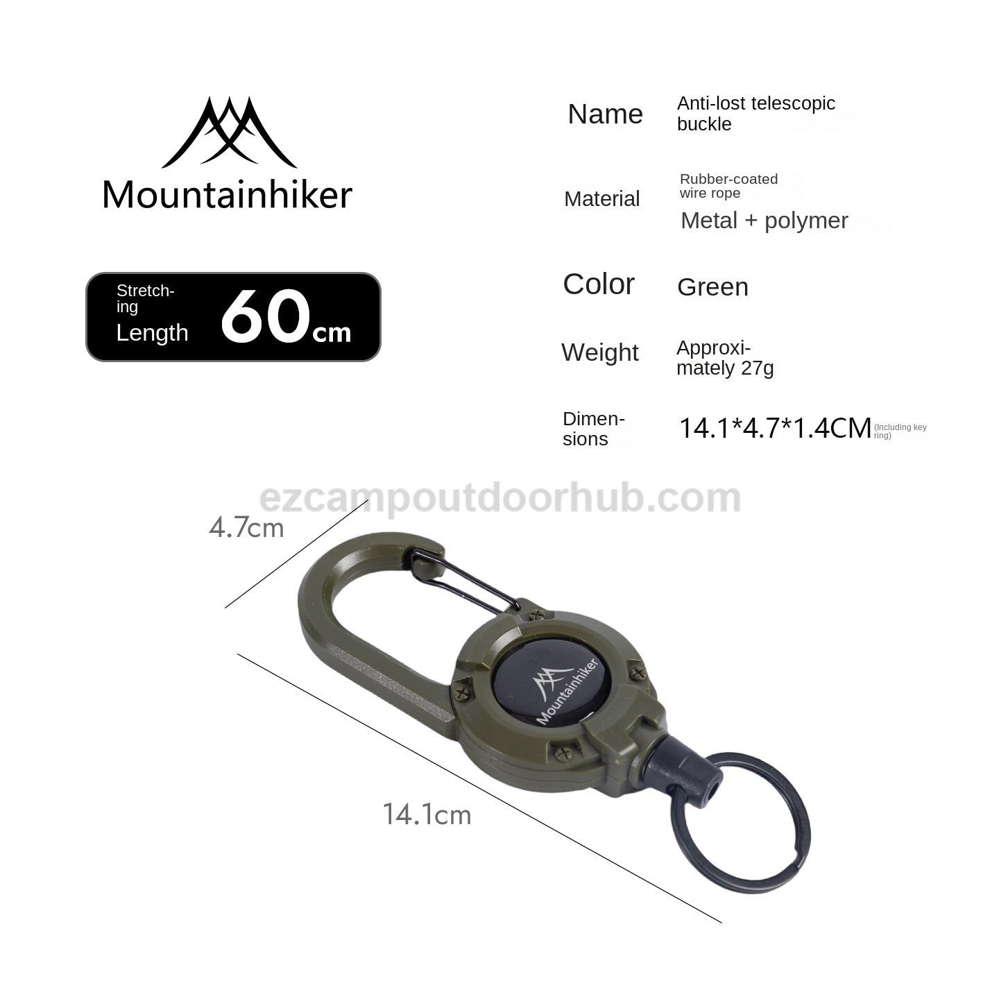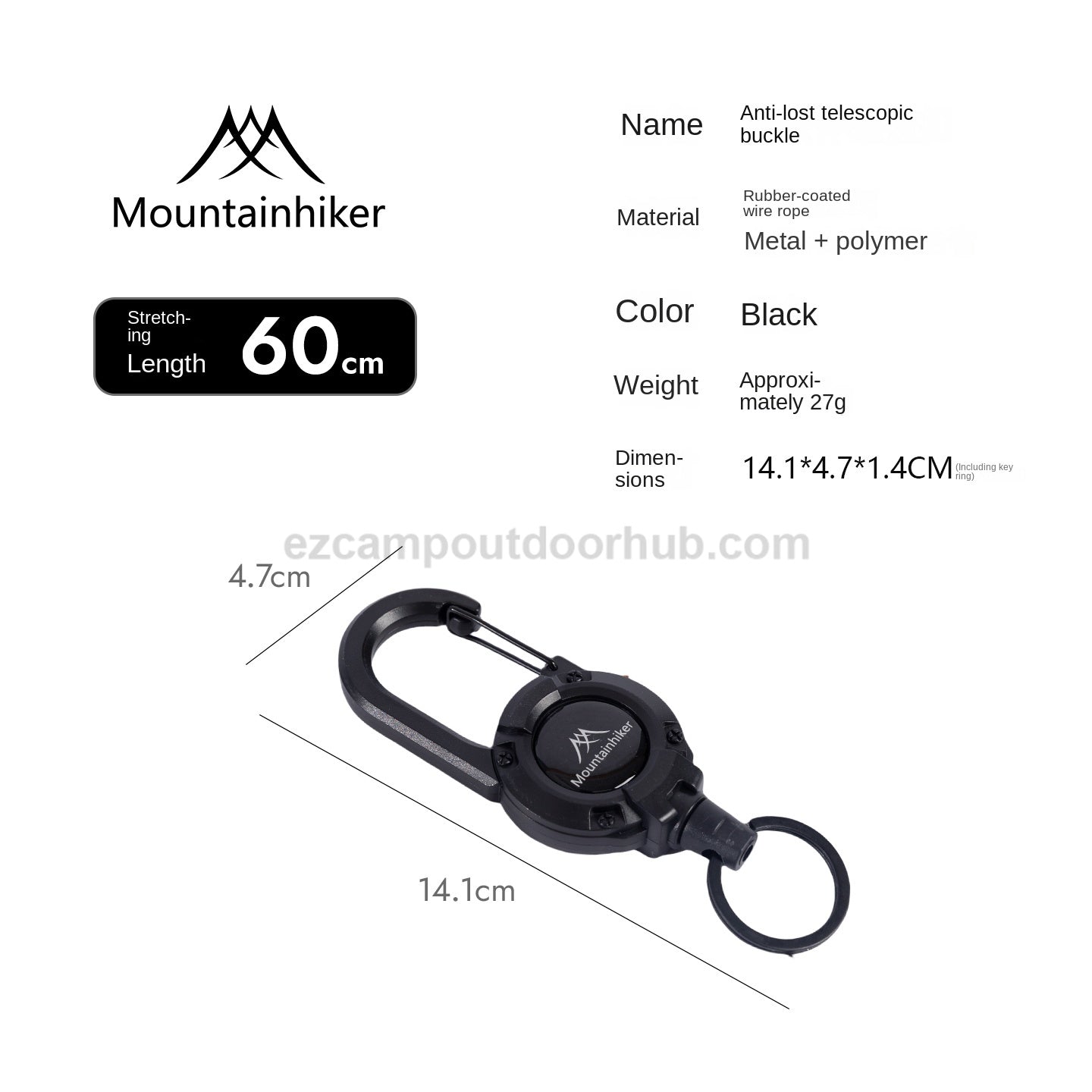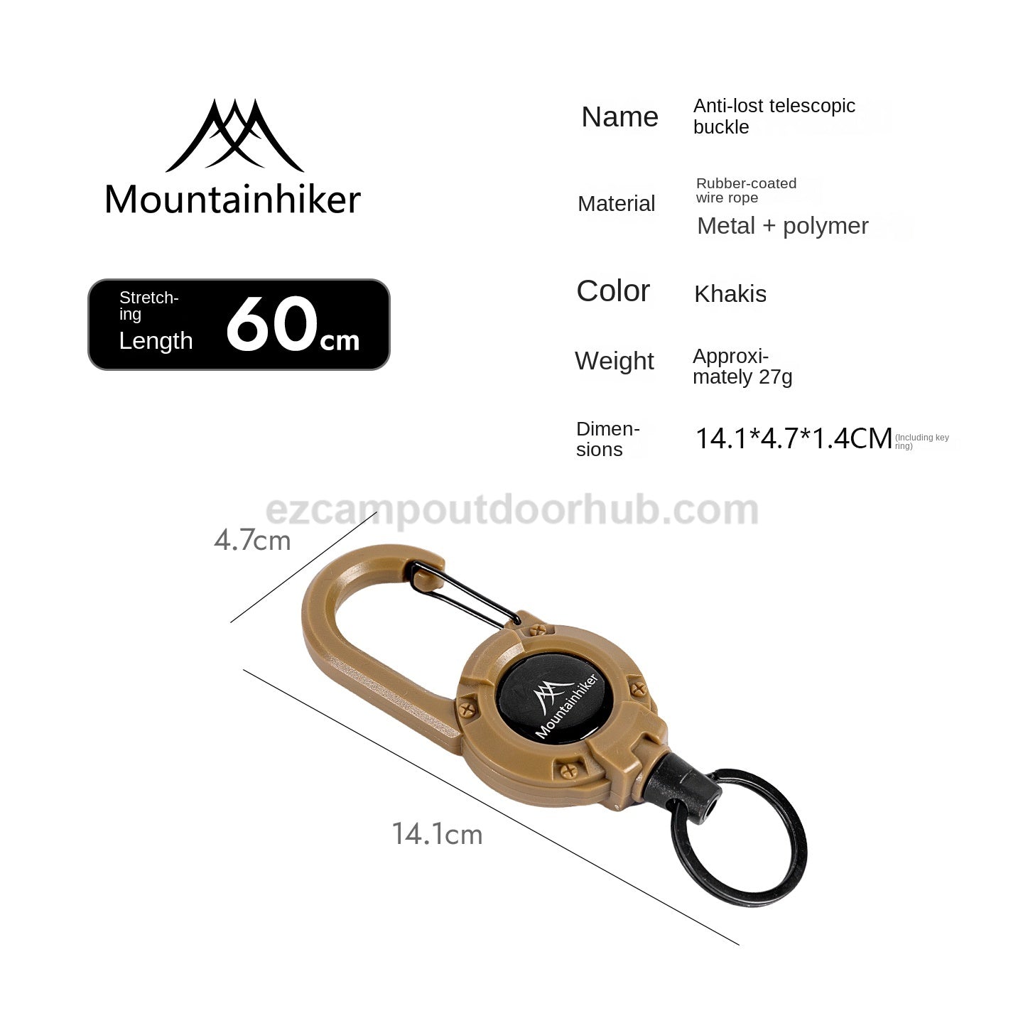Mountainhiker SZK1315 Hook Buckle Rope Portable Multipurpose Anti Lost Telescopic Stretchable Lanyard 60cm Keychain Fastener Hiking Outdoor Camping Travel