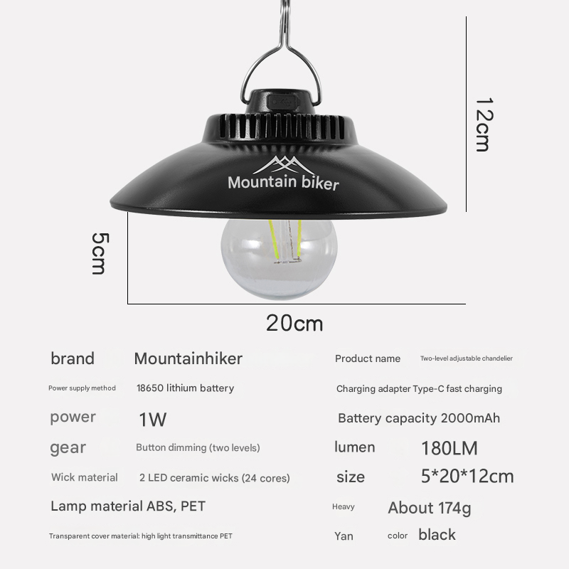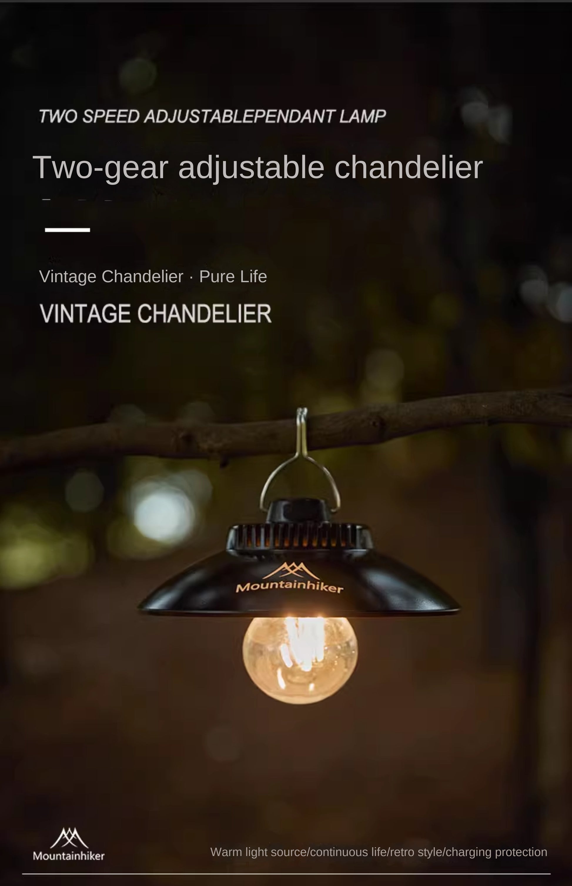 Mountainhiker Vintage Chandelier Hanging Pendant Atmosphere Style Lamp Adjustable 2 Level LED Lantern 2000mAh 180Lm Outdoor Camping Waterproof USB Charging