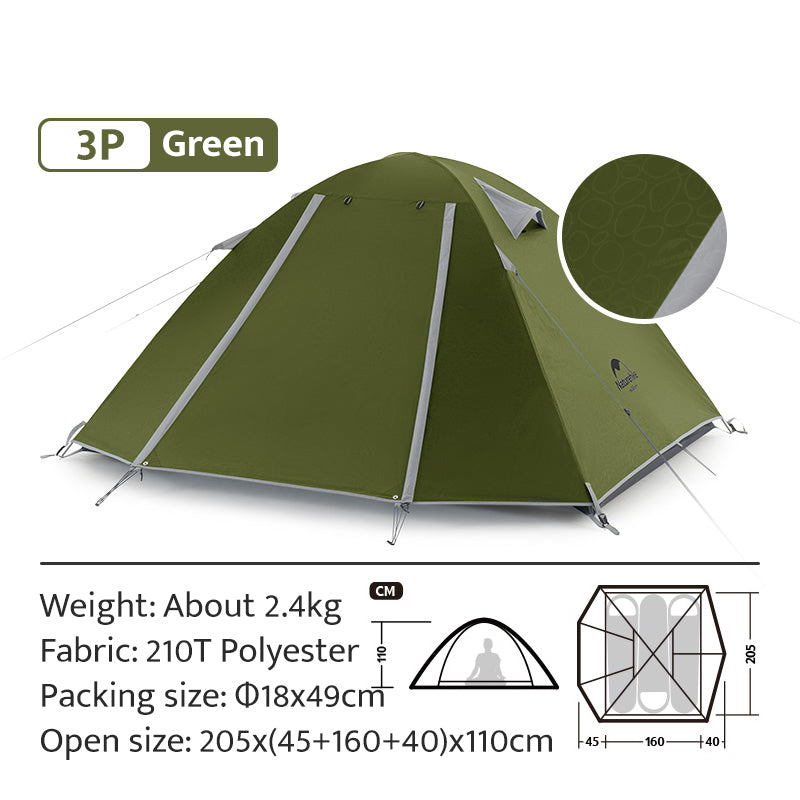 Weight: About 2.1kg (2P)/ About 2.4kg (3P) / About 3kg (4P)