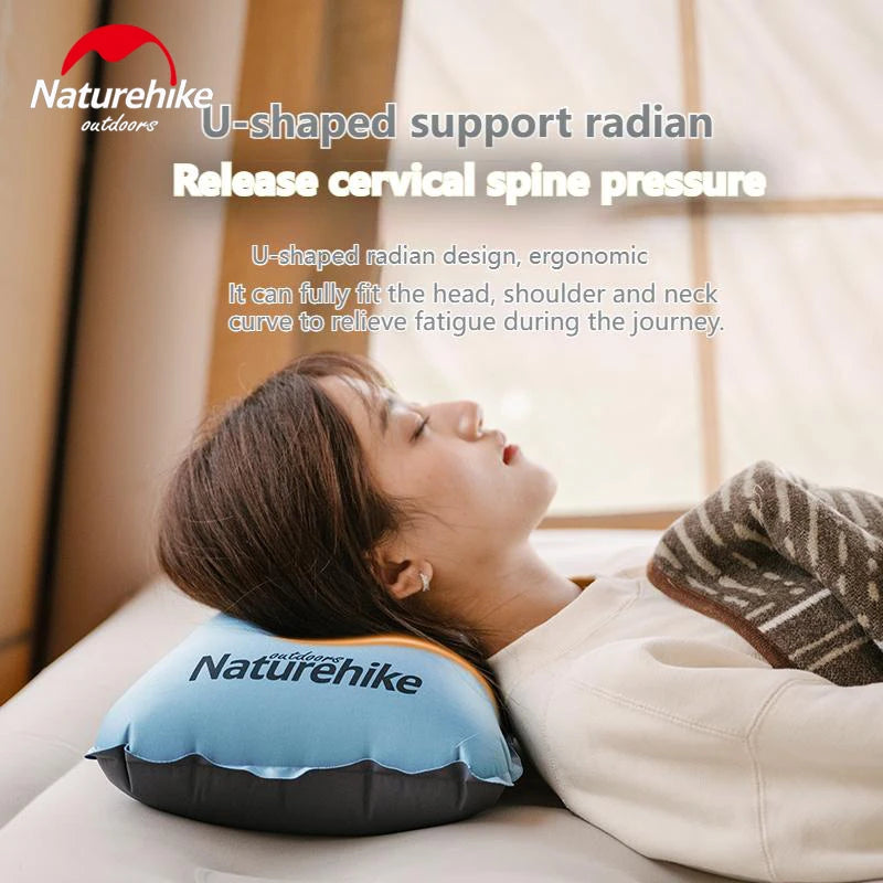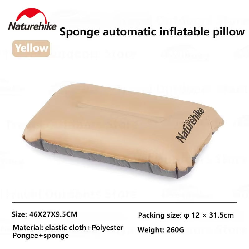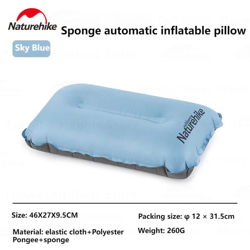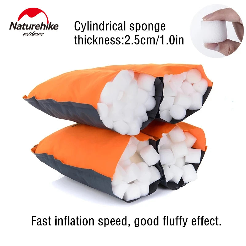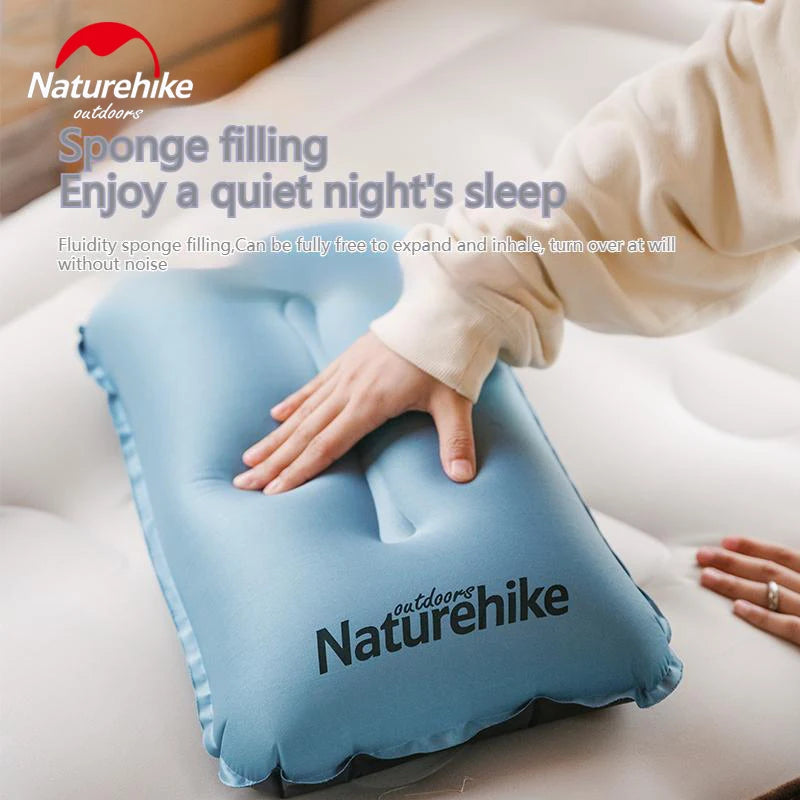 Naturehike Automatic Inflatable Pillow Portable Ultralight Inflating Sleeping Air Sponge Cushion High Elastic Support Skin-Friendly Height Adjustable Travel