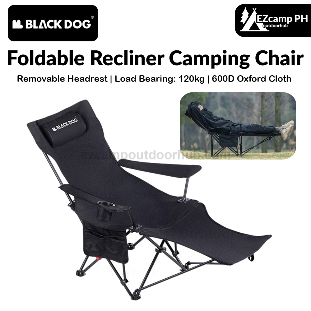 BLACKDOG Foldable Recliner Camping Chair Portable Lunch Break Balcony Home Leisure Sitting And Sleeping Chair With Pillow 4-Speed Adjustable Dual-Use Nap Lazy Outdoor Beach Chair Black Dog
