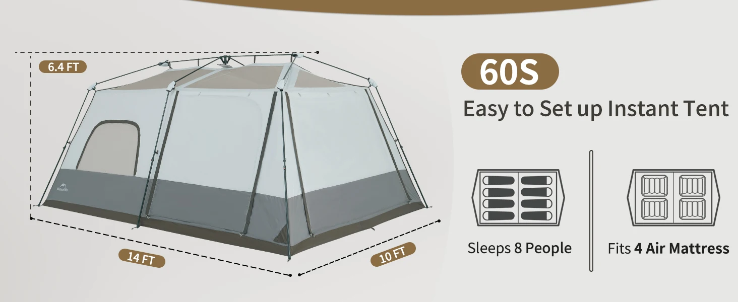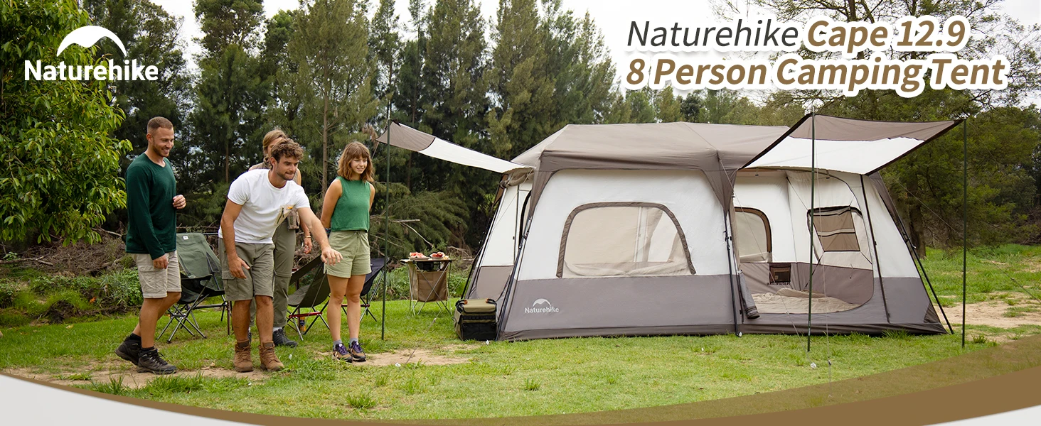 Naturehike CAPE 12.9 Fast Automatic Tent Large Space Cabin Style 2 Bedroom Tent for up to 6-8 Person Outdoor Camping Waterproof Windproof 60s Quick Build Auto Poles Nature Hike village 13 13m²