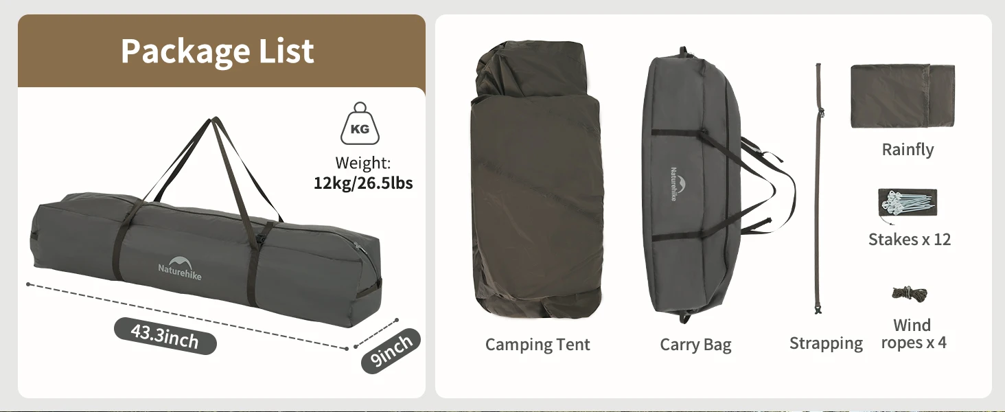 Naturehike CAPE 8.3 Fast Automatic Tent 8.3m² Interior Space Cabin Style 1 Bedroom 3 Door Tent for up to 4-6 Person Outdoor Camping Waterproof Windproof 60s Quick Build Auto Poles Nature Hike village