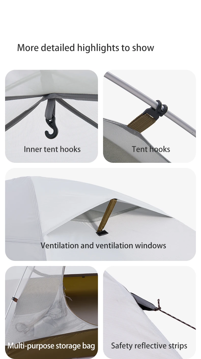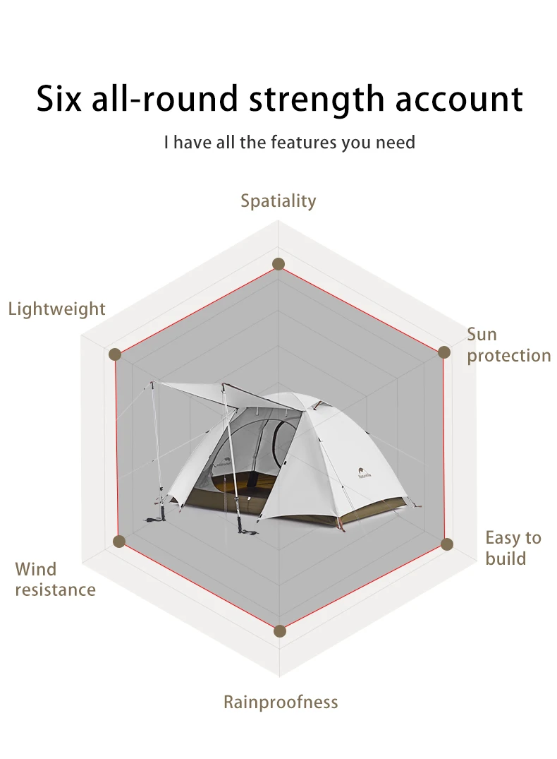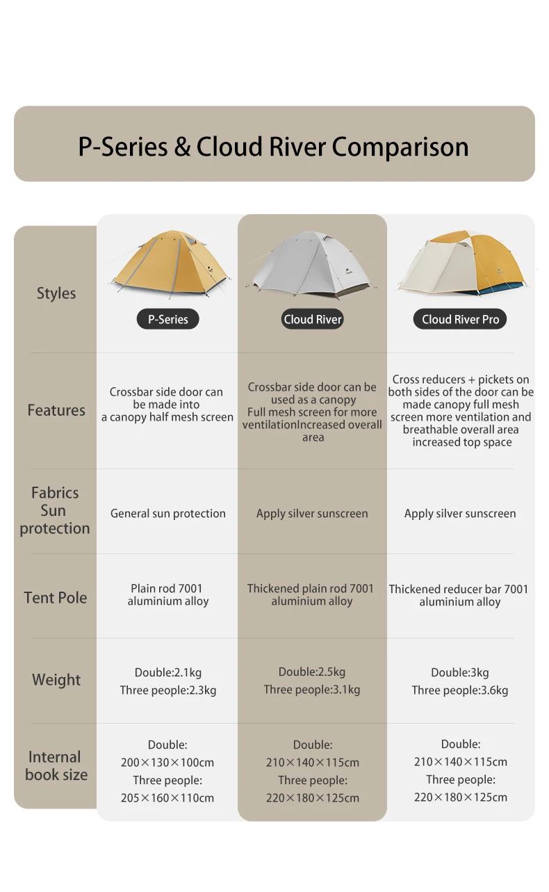 Naturehike CLOUD RIVER Series 2 / 3 Person Ultralight Camping Hiking Tent Portable Waterproof Silver Coated UPF50+ Awning Aluminum Pole Backpacking