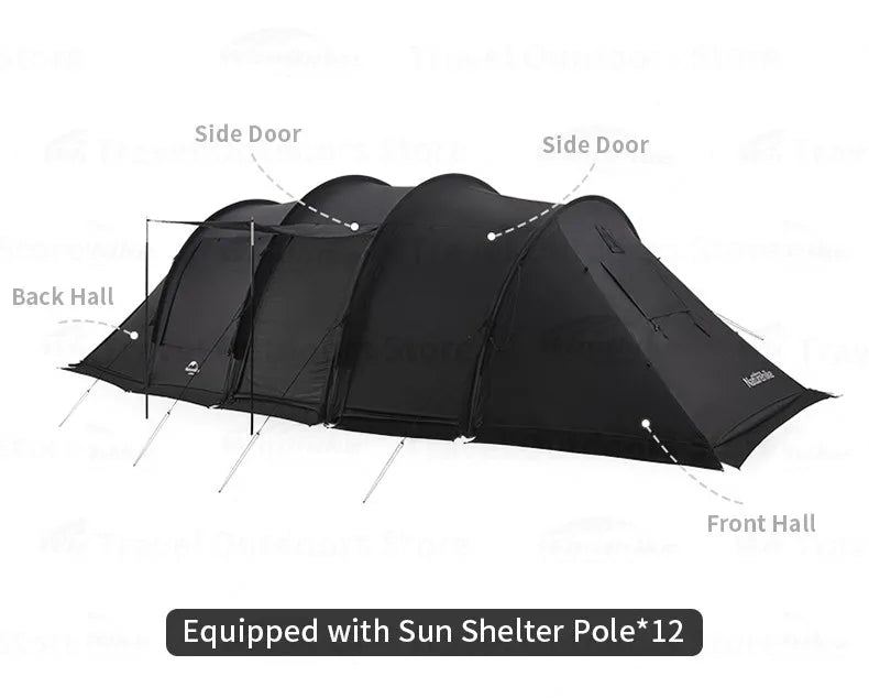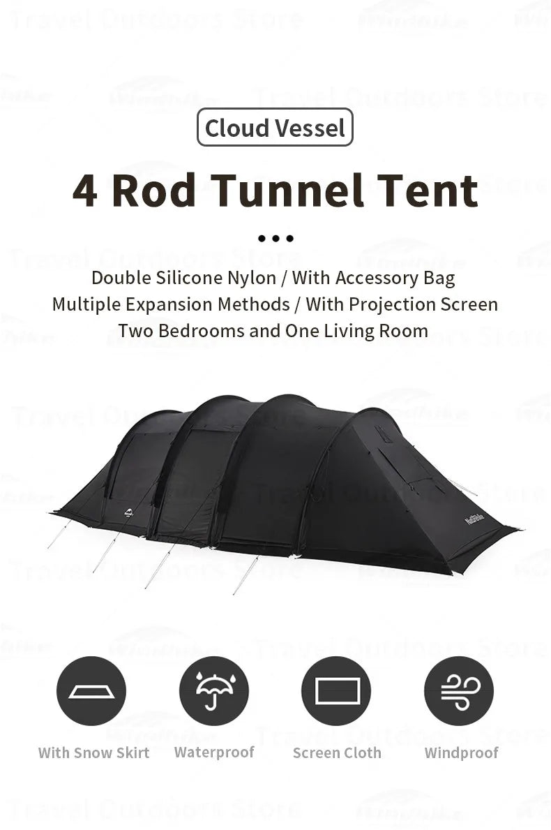 Naturehike Cloud Vessel Tunnel Tent With Snow Skirt Large 4-6 Persons Supplies Equipment Outdoor Camping Picnic Travel Tourist 150D Oxford Cloth UPF50+ Heavy Duty Original Nature Hike