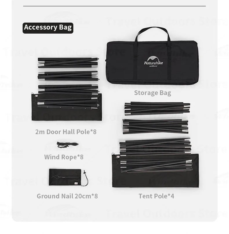 Give Away Accessory Bag: 2m Door Hall Pole*8 / Wind Rope*8 / Ground Nail 20cm*8 / Tent Pole*4 / Storage Bag