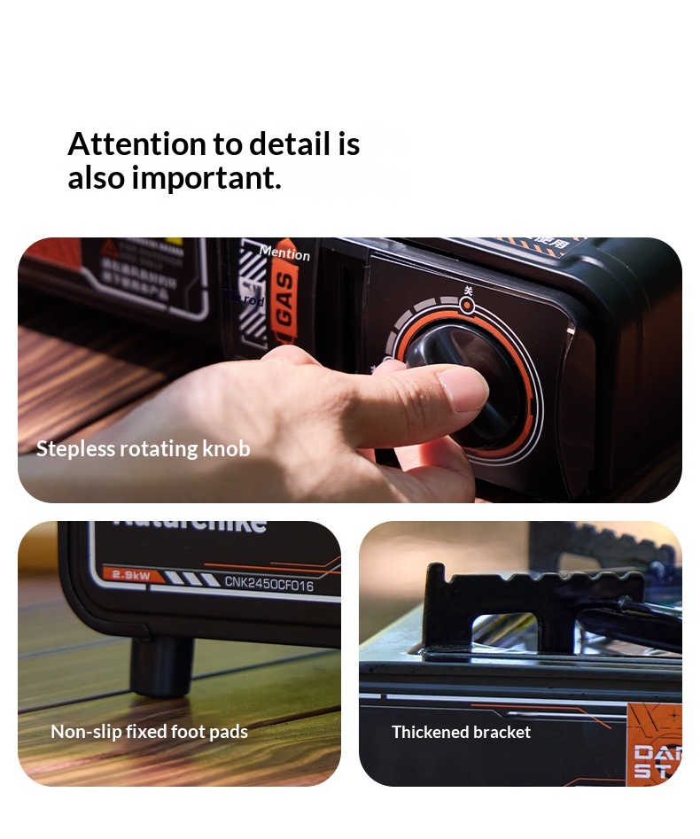 Naturehike DARK STAR Cassette Stove 2.9kw Firepower Basic Burner With Storage Case Windproof Stove Rack Stepless Rotating Knob Butane Canister Outdoor