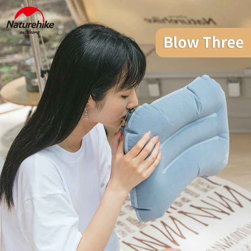 Naturehike Flocking Sleep Pillow Portable Ultralight Folding TPU Inflatable U-Shaped Pillow Rest Comfortable Soft Air Cushion Travel Outdoor Sleeping Cushion