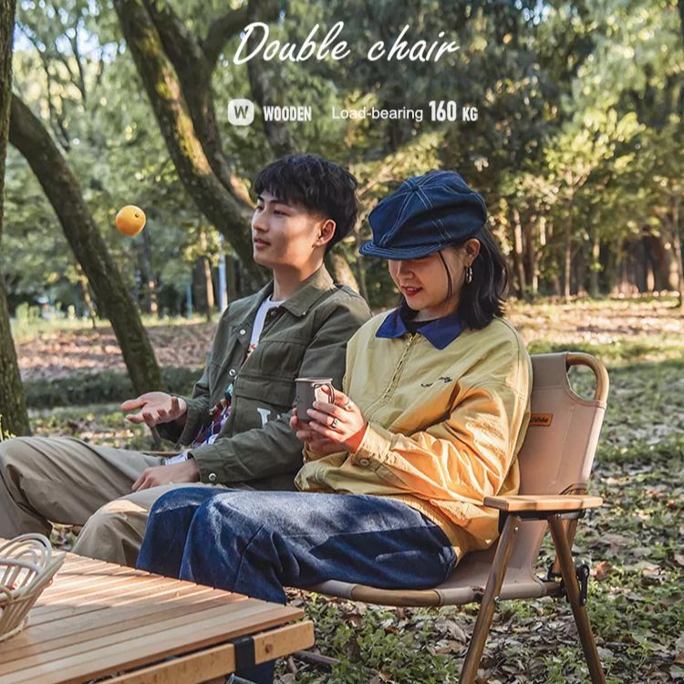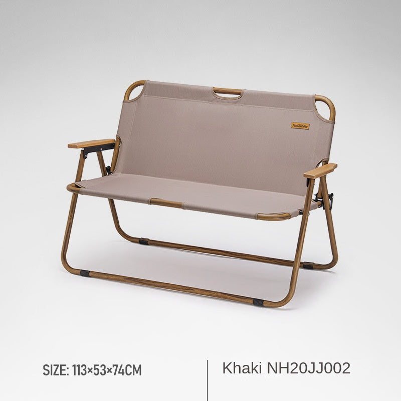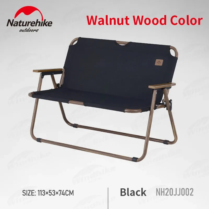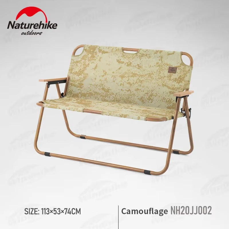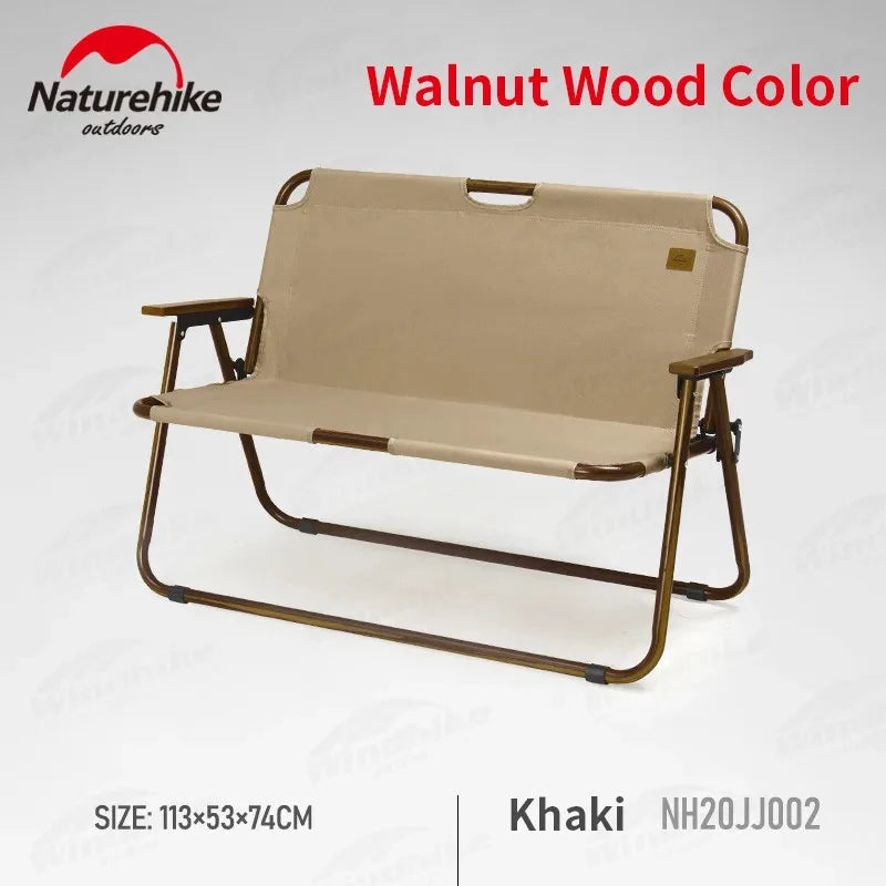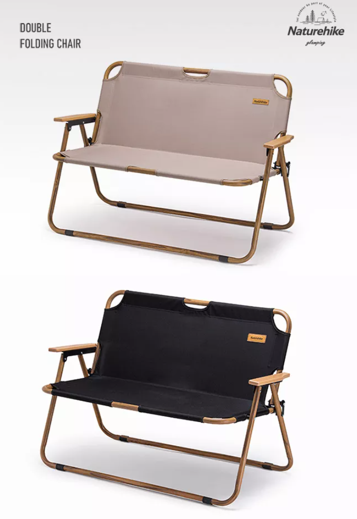 Naturehike Foldable Double Camping Chair Outdoor Portable Lightweight Wood Grain Seat Folding Dual Bench 160KG Max Load Camp Aluminum Alloy Hiking Beach Picnic Travel Heavy Duty Original Nature Hike