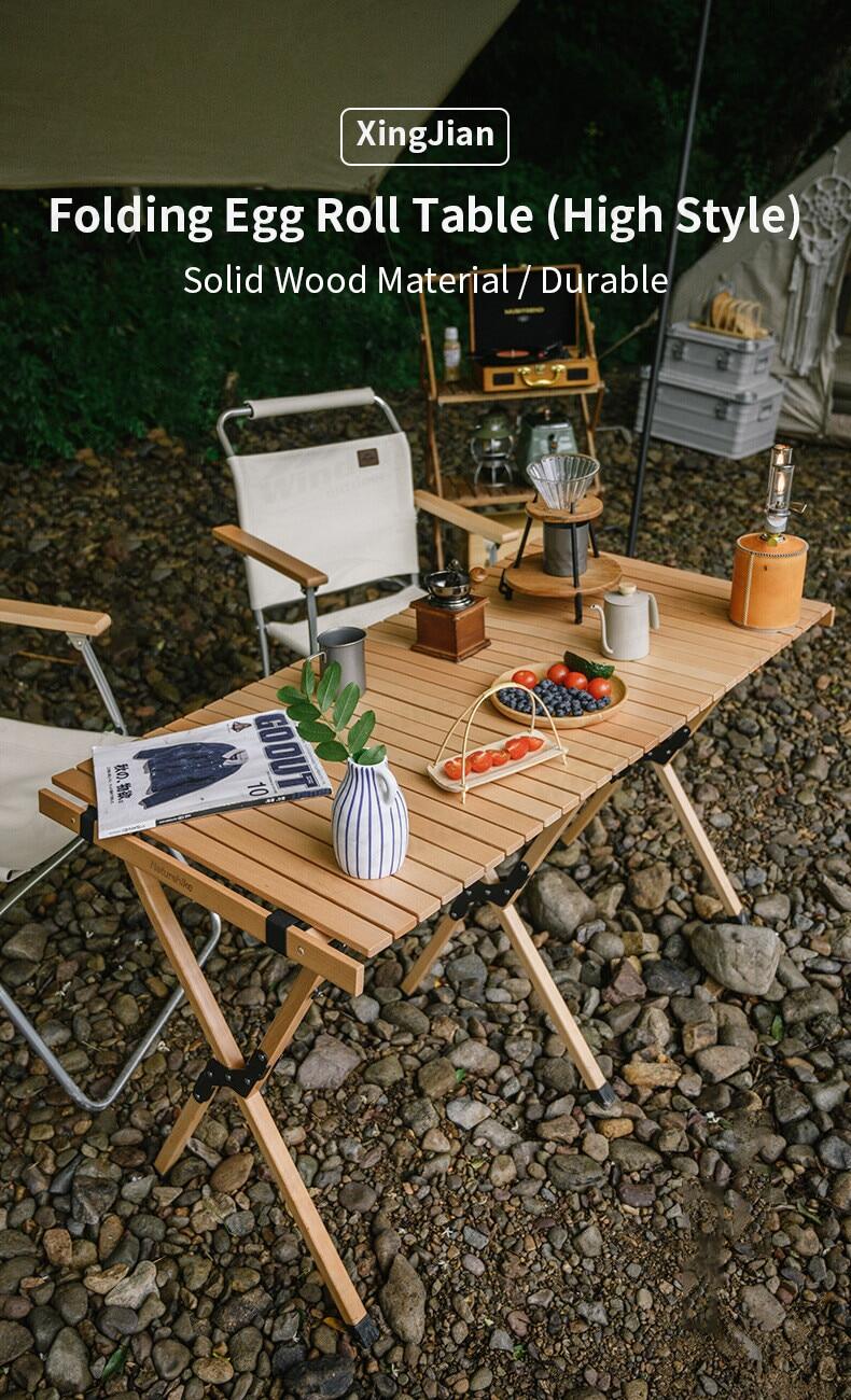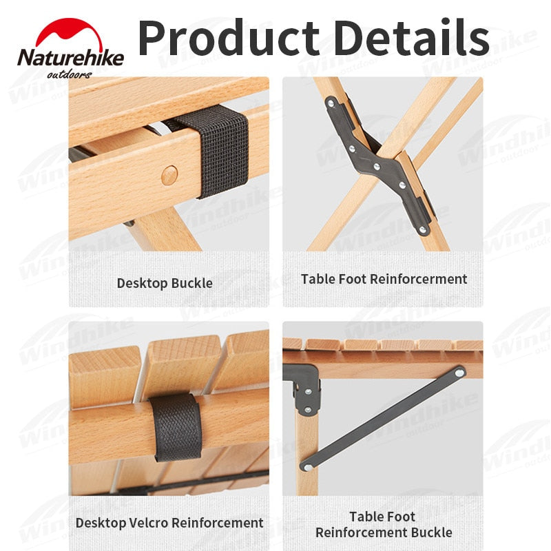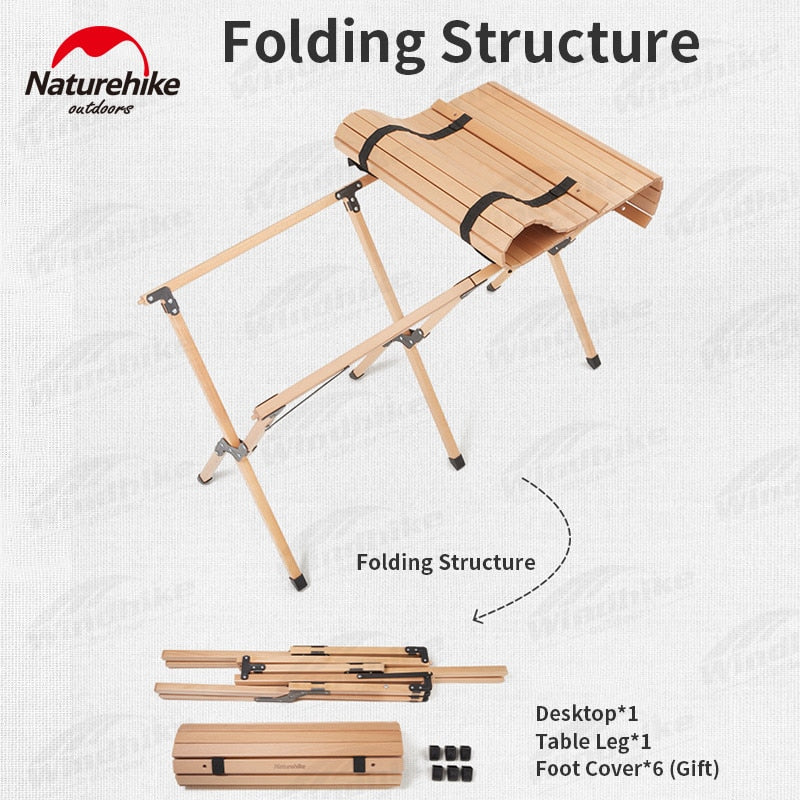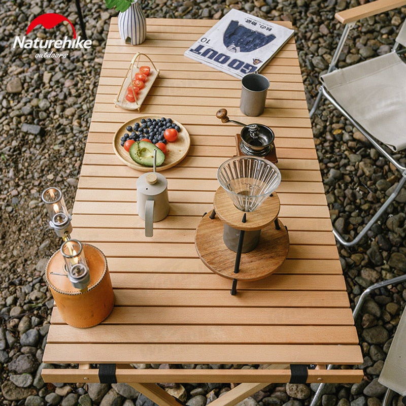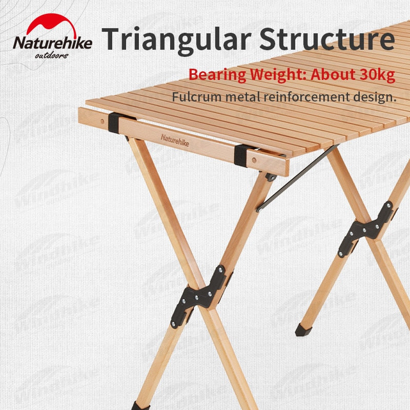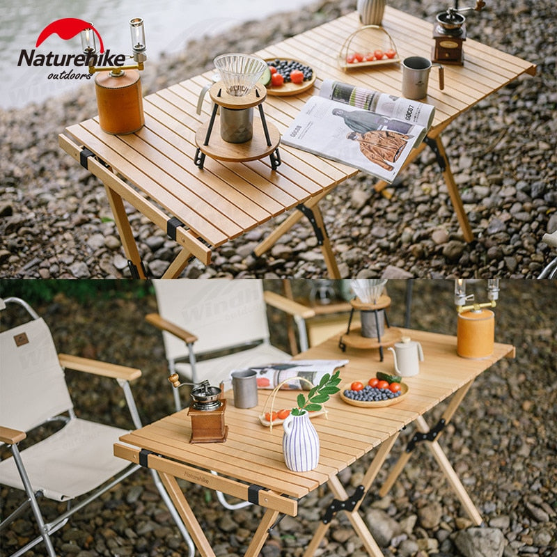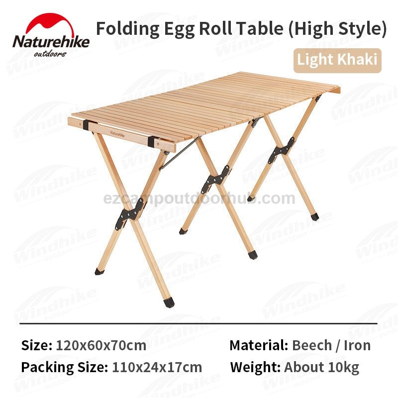 Naturehike Folding Egg Roll Table Portable Solid Wood High Camping Picnic Barbecue Party Tea Table 30kg Bearing Weight Outdoor Funiture Nature Hike