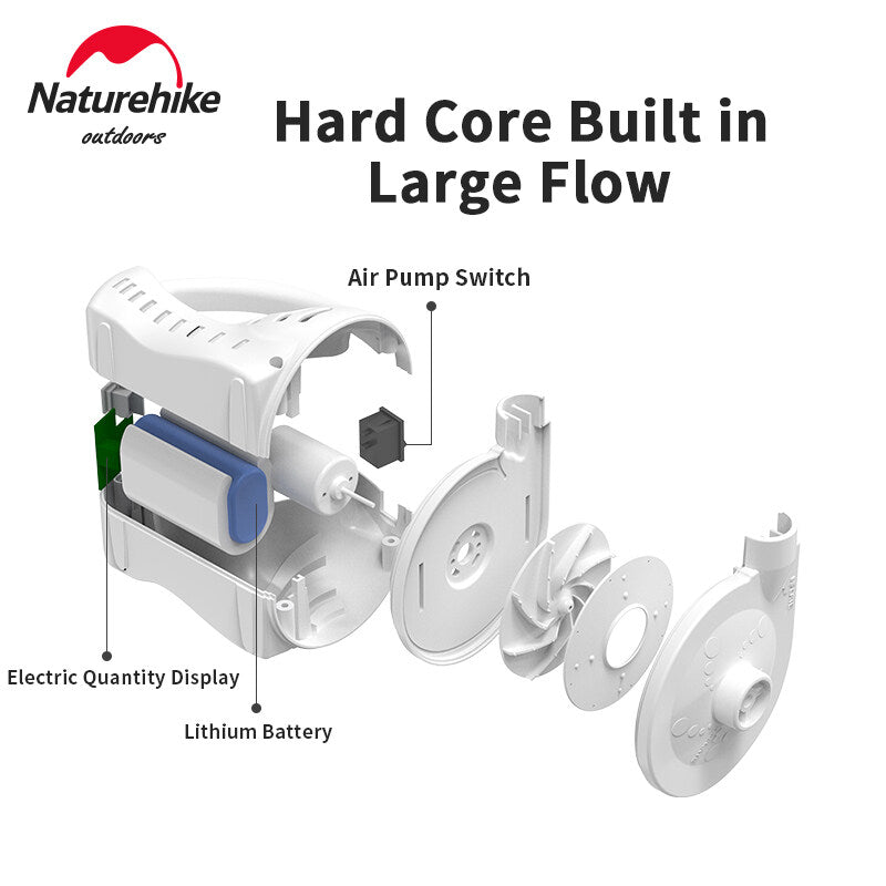 Naturehike High Power Wireless Air Pump For Sleeping Mat Pad Mattress Pillow Inflatable Camping Portable Mini USB Battery Charging Inflate Deflate