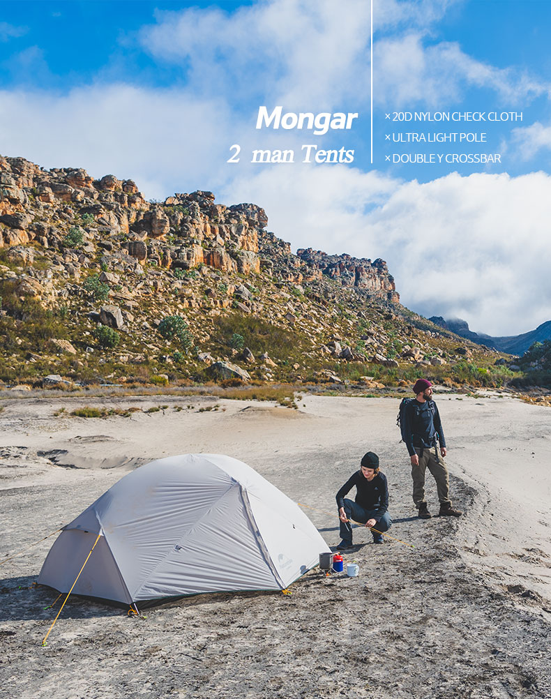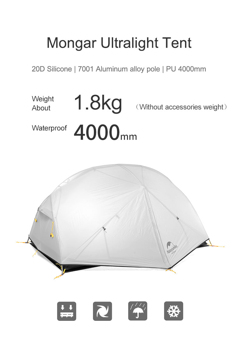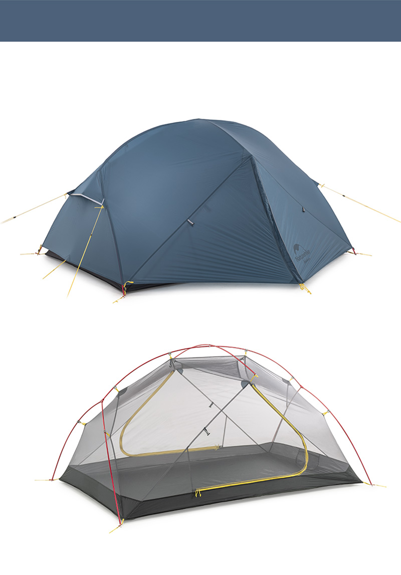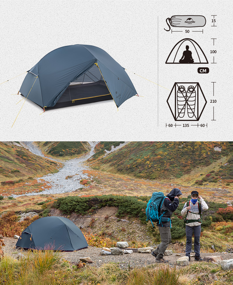 Naturehike MONGAR Series 2 Person 3 Season Camping Backpacking Hiking Ultralight Portable Outdoor Tent Waterproof Windproof 15D 20D Light Weight