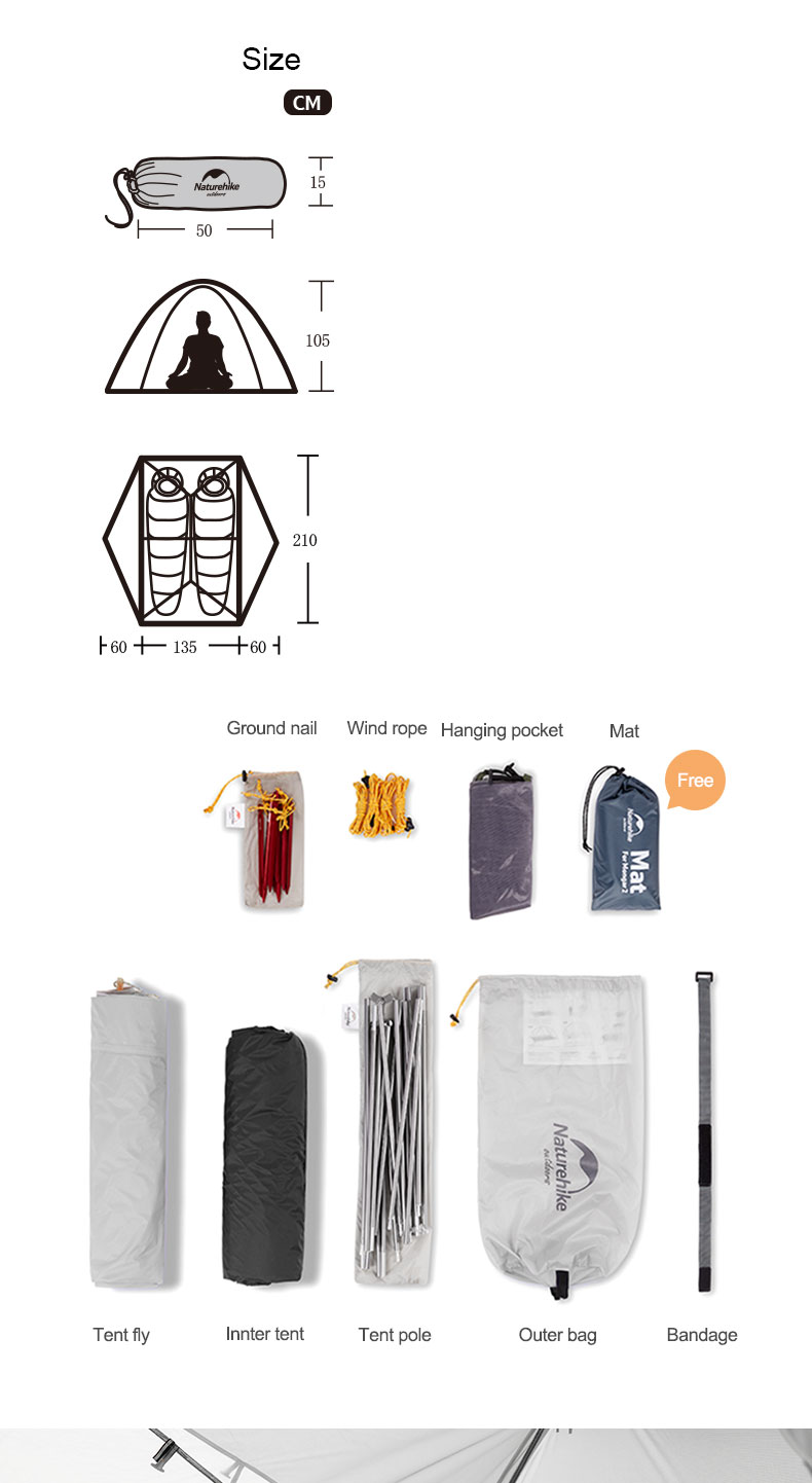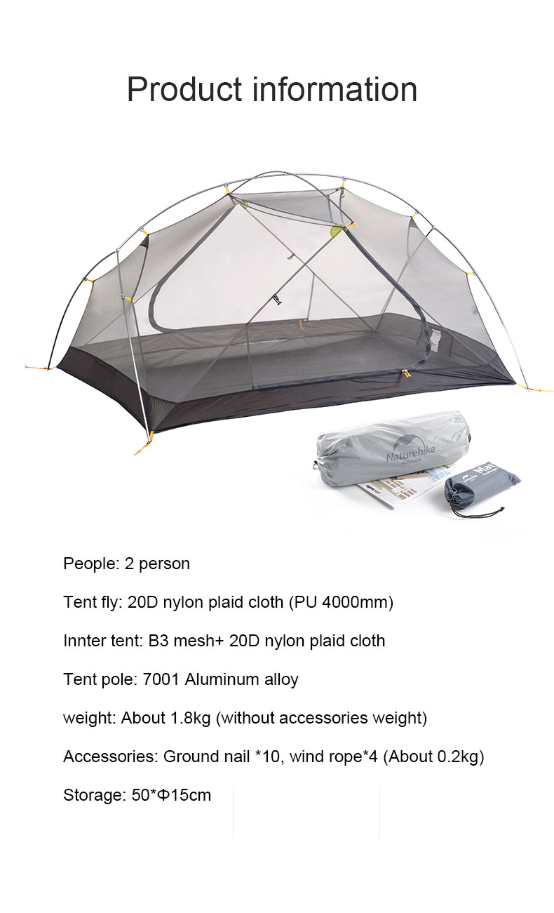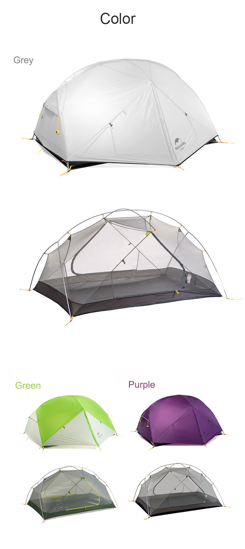 Naturehike MONGAR Series 2 Person 3 Season Camping Backpacking Hiking Ultralight Portable Outdoor Tent Waterproof Windproof 15D 20D Light Weight