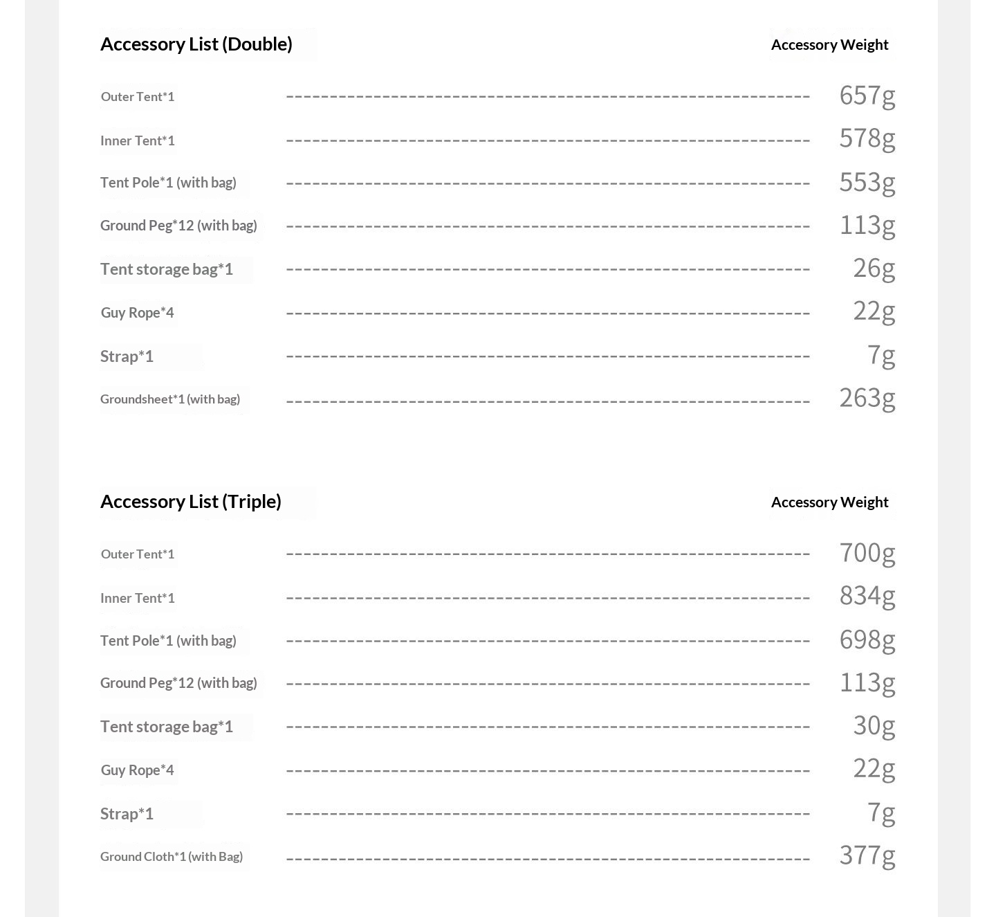 Weight: (UL 1 Person) 1.20 kg / (UL 2 Persons) 1.53 kg / (PRO 1 Person) 1.46 kg / (PRO 2 Persons) 1.81 kg / (PRO 3 Persons) 2.26 kg
