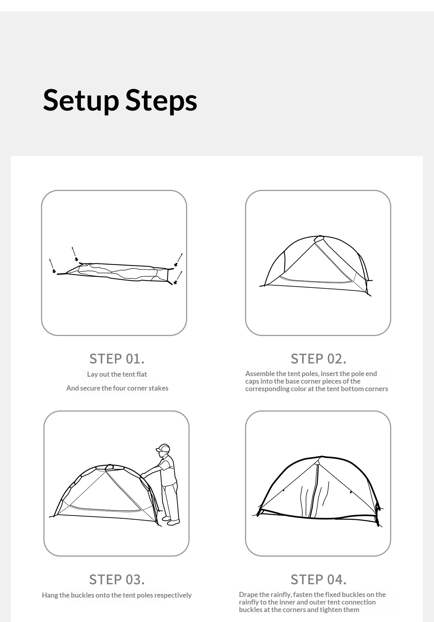 Internal Tent Size: (UL 1 Person) 210 x80 x100cm / (UL 2 Persons) 210x130x105cm / (PRO 1 Person) 220x95x100 cm / (PRO 2 Persons) 220x135x105 cm / (PRO 3 Persons) 220x185x110 cm EzCamp