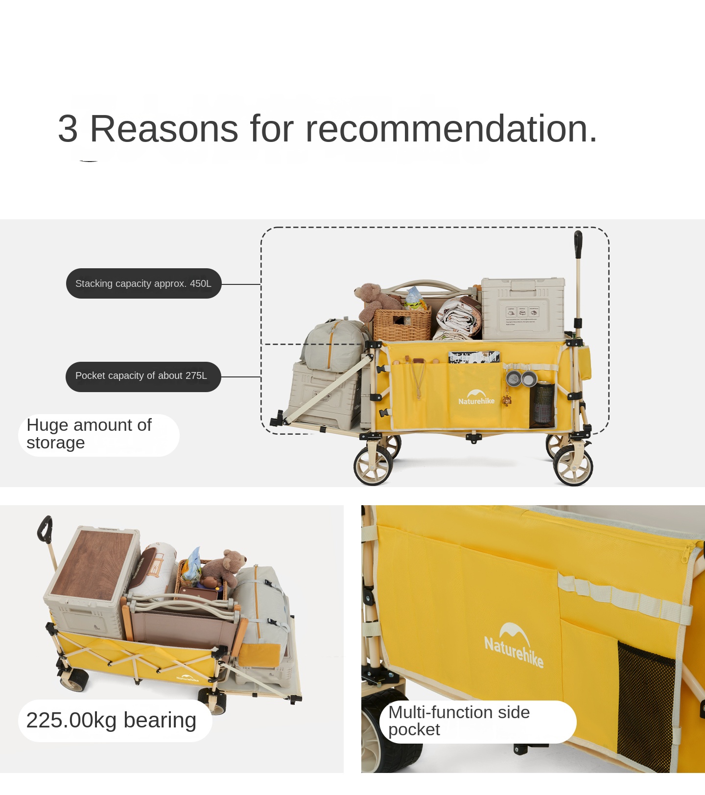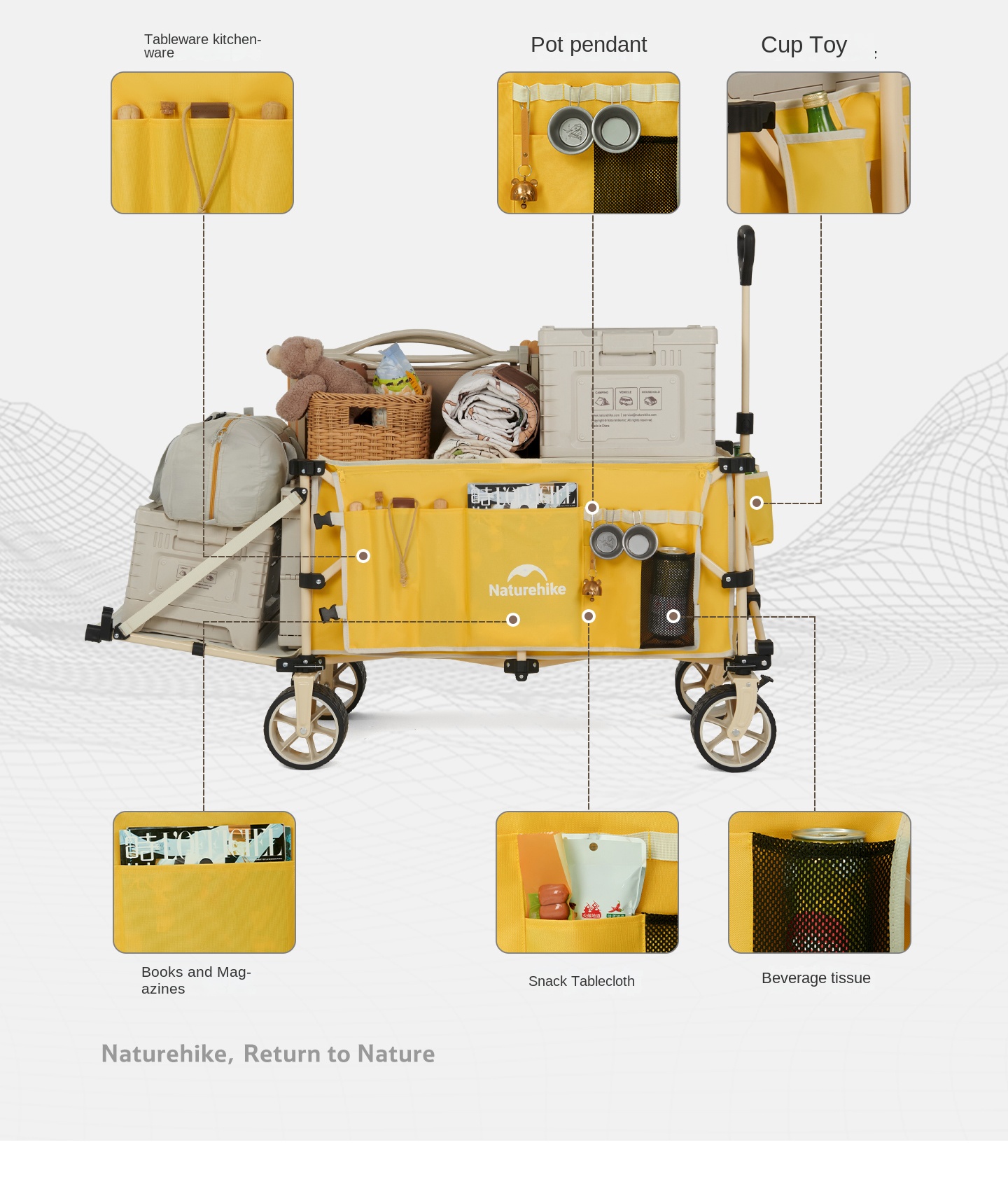 Naturehike RUBIK's CUBE PRO Camping Trolley Portable Foldable Outdoor Cart All Terrain Wheel Folding Wagon Up To 225kg Load 450L Capacity