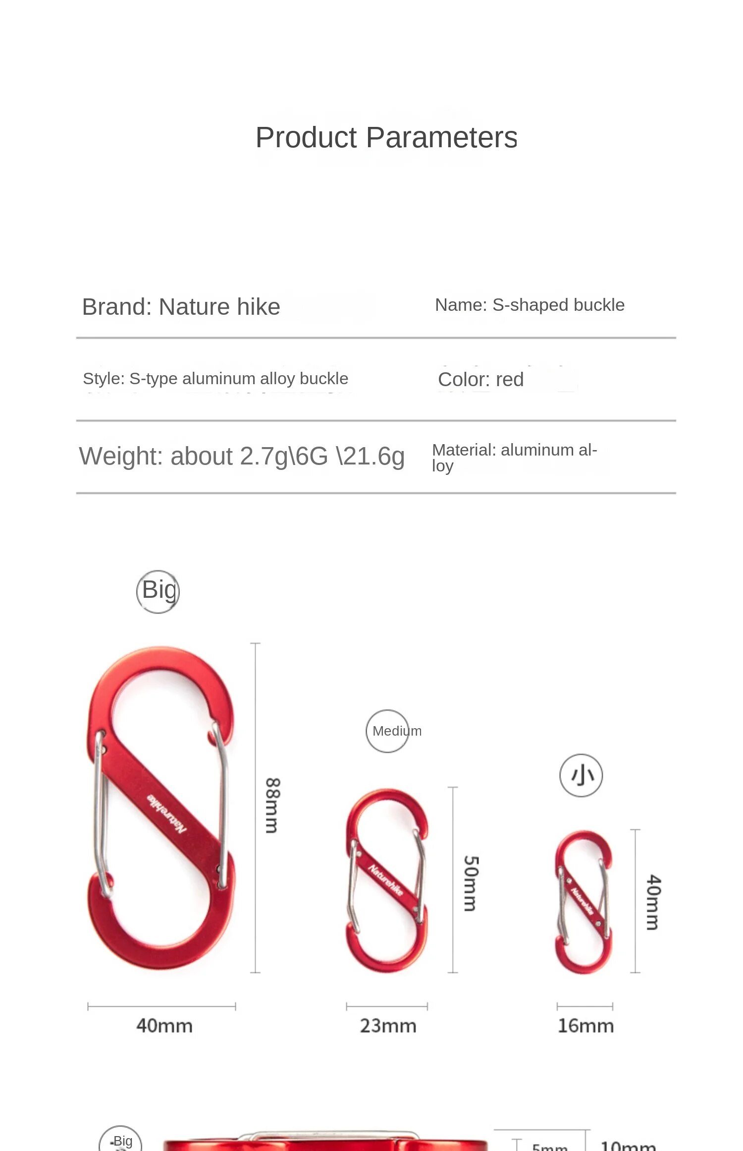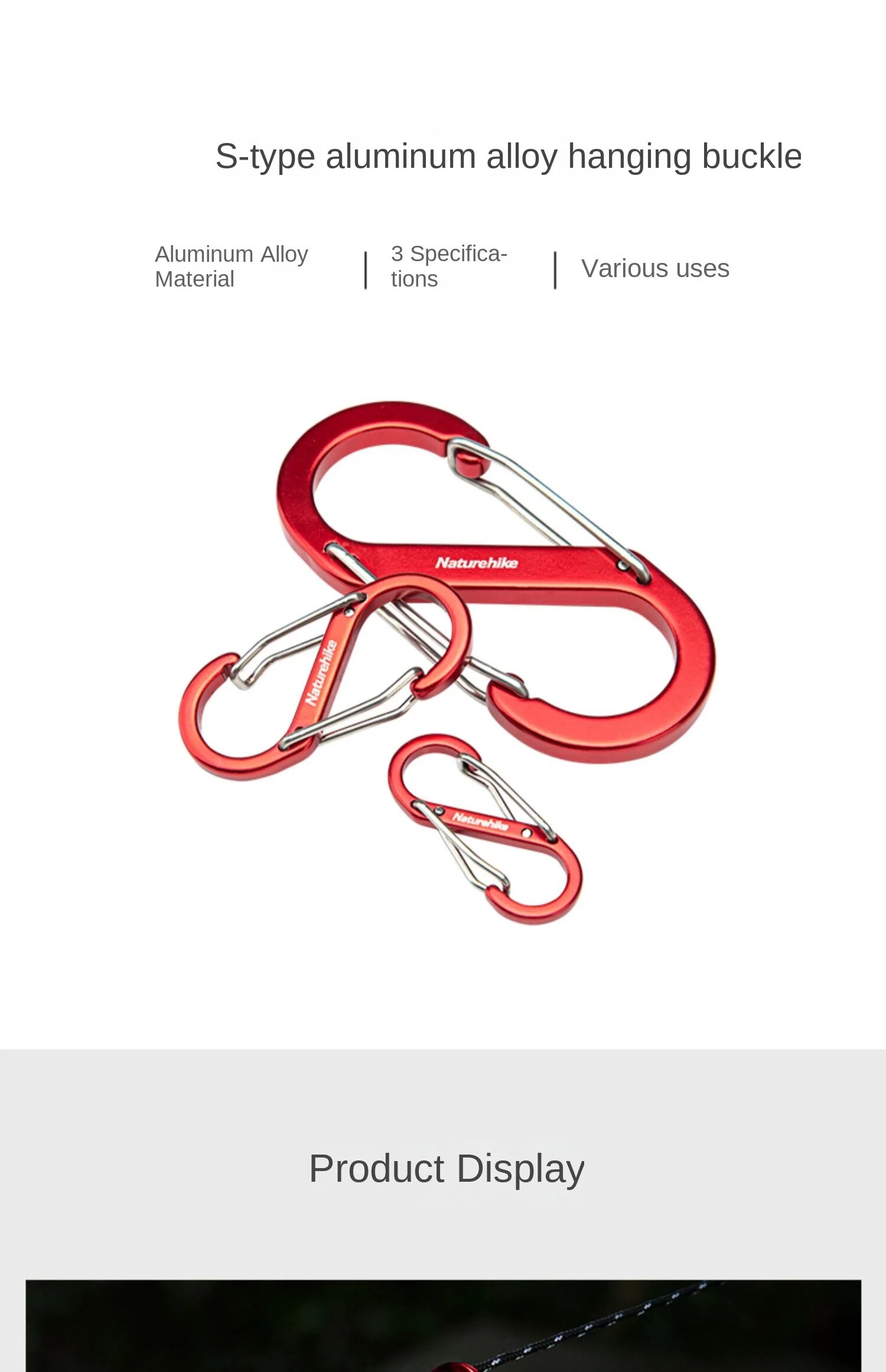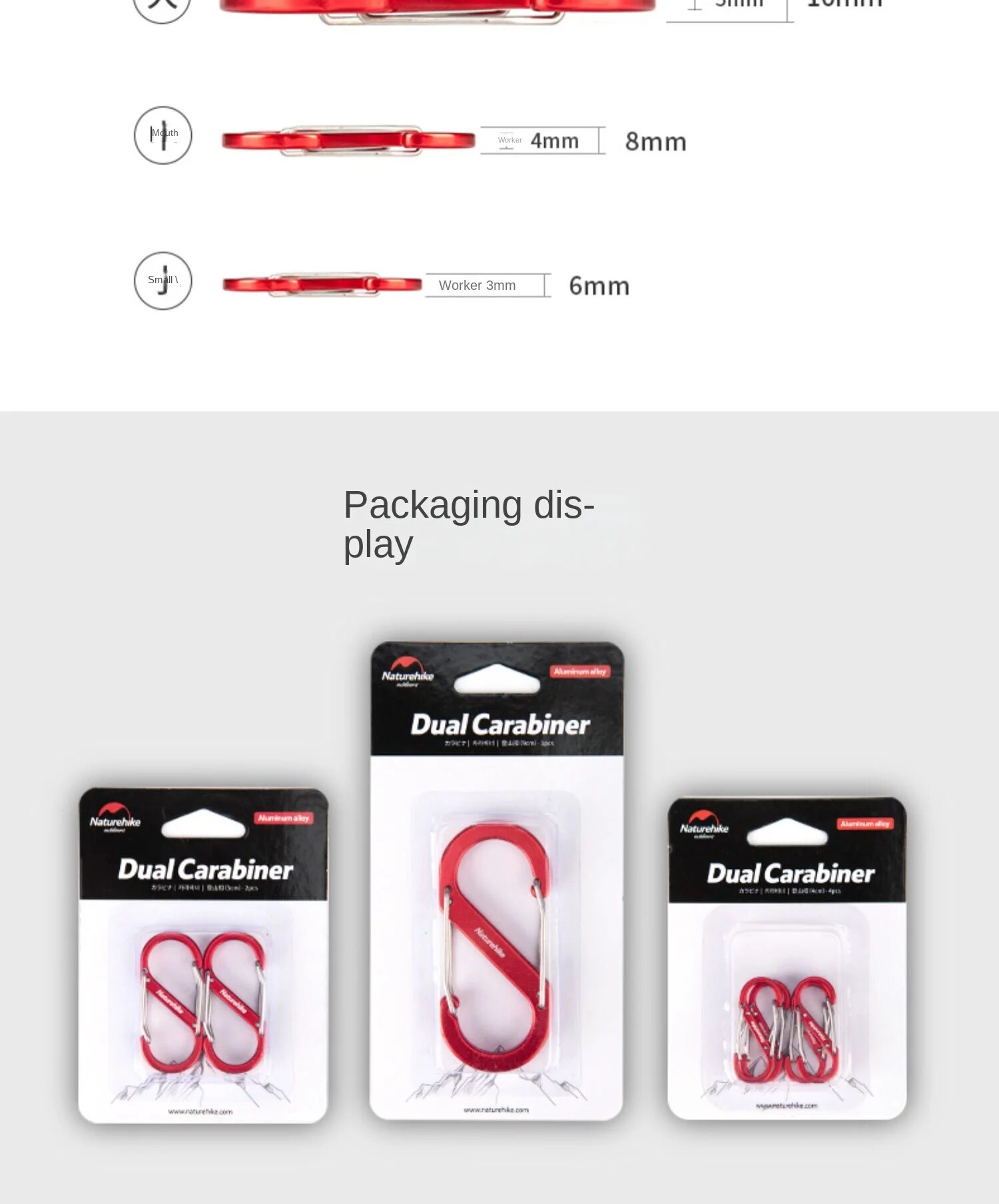 Naturehike S-Type Dual Aluminum Alloy Carabiner Buckle Small Medium Large 4CM 5CM 9CM S Type Hanging Double Utility Strap Keychain Holder Heavy Duty Hook Nature Hike Key Chain